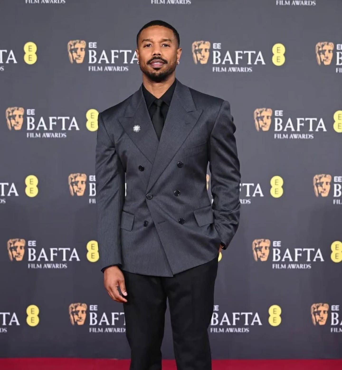 وصل مايكل بي جوردن بإطلالة سوداء أنيقة ضمن منافسات أفضل ممثل، وأضاف عنصرًا لافتًا بقطعة فضية على شكل شمس زيّنت صدره، مانحًا البدلة طابعًا شخصيًا مميزًا يجمع بين الصرامة والرمزية.