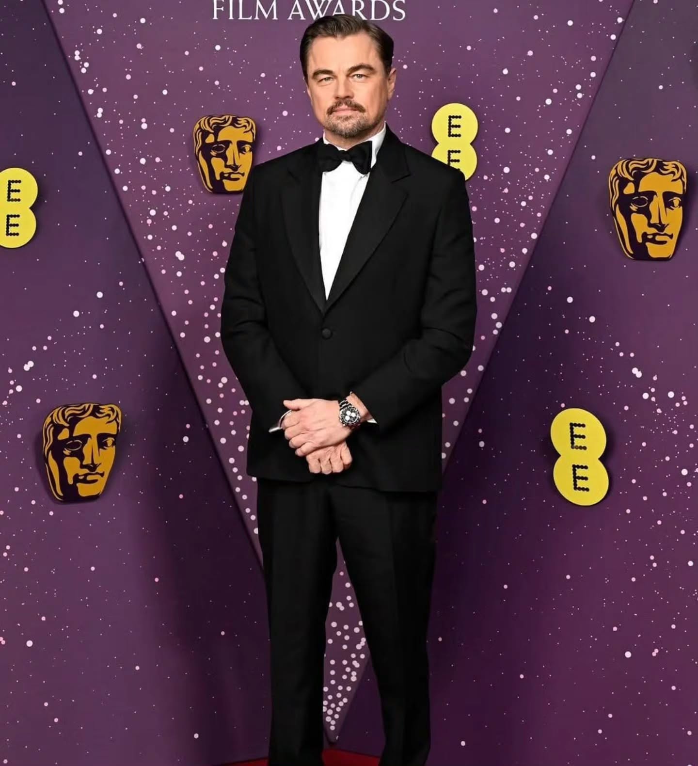 دي كابريو تمسّك بالتوكسيدو الأسود التقليدي من Dior مع ربطة عنق سوداء، في إطلالة تؤكد أن الرقي أحيانًا يكمن في الالتزام بالقواعد. حضور هوليوودي كلاسيكي يليق بنجم مخضرم.