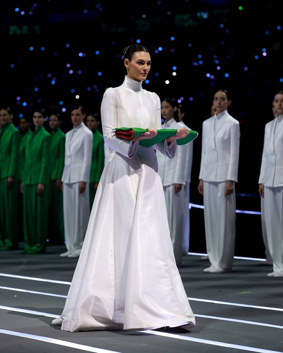 البداية كانت تكريمًا مؤثرًا للمصمم الإيطالي الراحل Giorgio Armani، الذي رحل في سبتمبر 2025 عن عمر 91 عامًا، تاركًا إرثًا من الأناقة البسيطة والنقية. في حفل ميلانو–كورتينا، ارتدت العارضات ملابس من تصميم Armani بألوان العلم الإيطالي الأخضر والأبيض والأحمر، لتشكل في النهاية علم إيطاليا على أرض الملعب، مشهدًا فنيًا وجماليًا يمزج بين الإرث الوطني والموضة الراقية، مؤكدًا أن أرماني أصبح رمزًا ثقافيًا يتجاوز حدود الموضة ليصبح جزءًا من الهوية الوطنية.