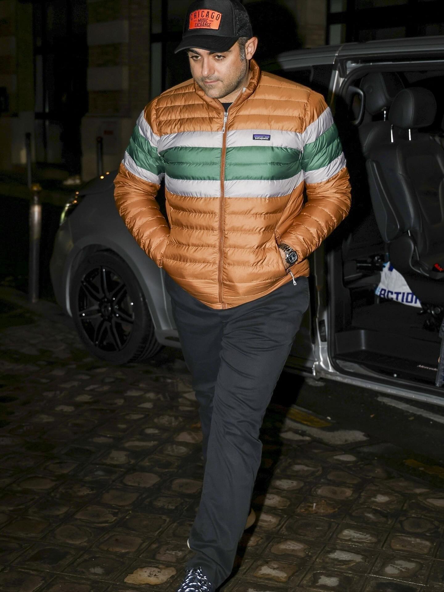 أما خطيبها Michael، فقد ظهر بإطلالة كاجوال مرتديًا جاكيت مبطن وبنطلون جينز وقبعة بيسبول، ما منح المشهد توازنًا طبيعيًا بين أناقة Gaga وبساطته.