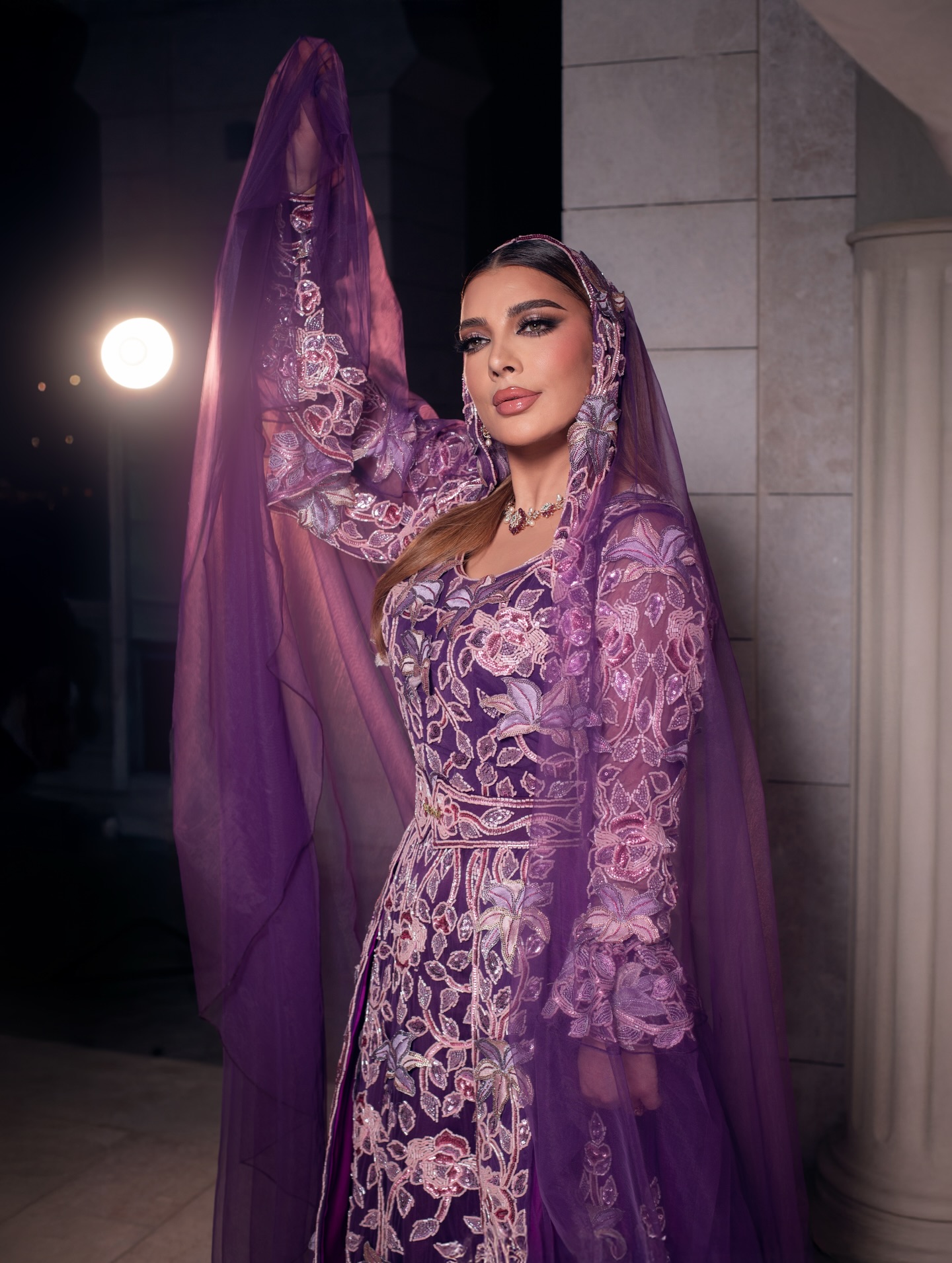 في مدرّج خورفكان، أطلت الفنانة أصالة نصري بإطلالة مستوحاة من الستايل الإماراتي التقليدي ضمن فعاليات موسم “هلا خورفكان”. ارتدت أصالة فستانًا موشّحًا بالبرقع، منحها حضورًا ثقافيًا متمازجًا مع الحداثة، حيث أضاف الوشاح الطويل لمسة فنية مبهرة.