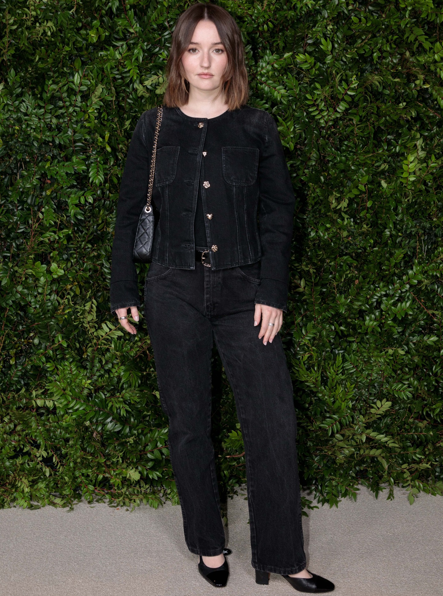 ظهرت Kaitlyn Dever بإطلالة سوداء بالكامل من Chanel، تضمنت سترة قصيرة وسروالًا مستقيمًا مصقولًا مع كعب أسود أنيق. إطلالة تجمع بين العملية والترف بأسلوب يعكس ثقة الجيل الجديد من نجمات هوليوود.