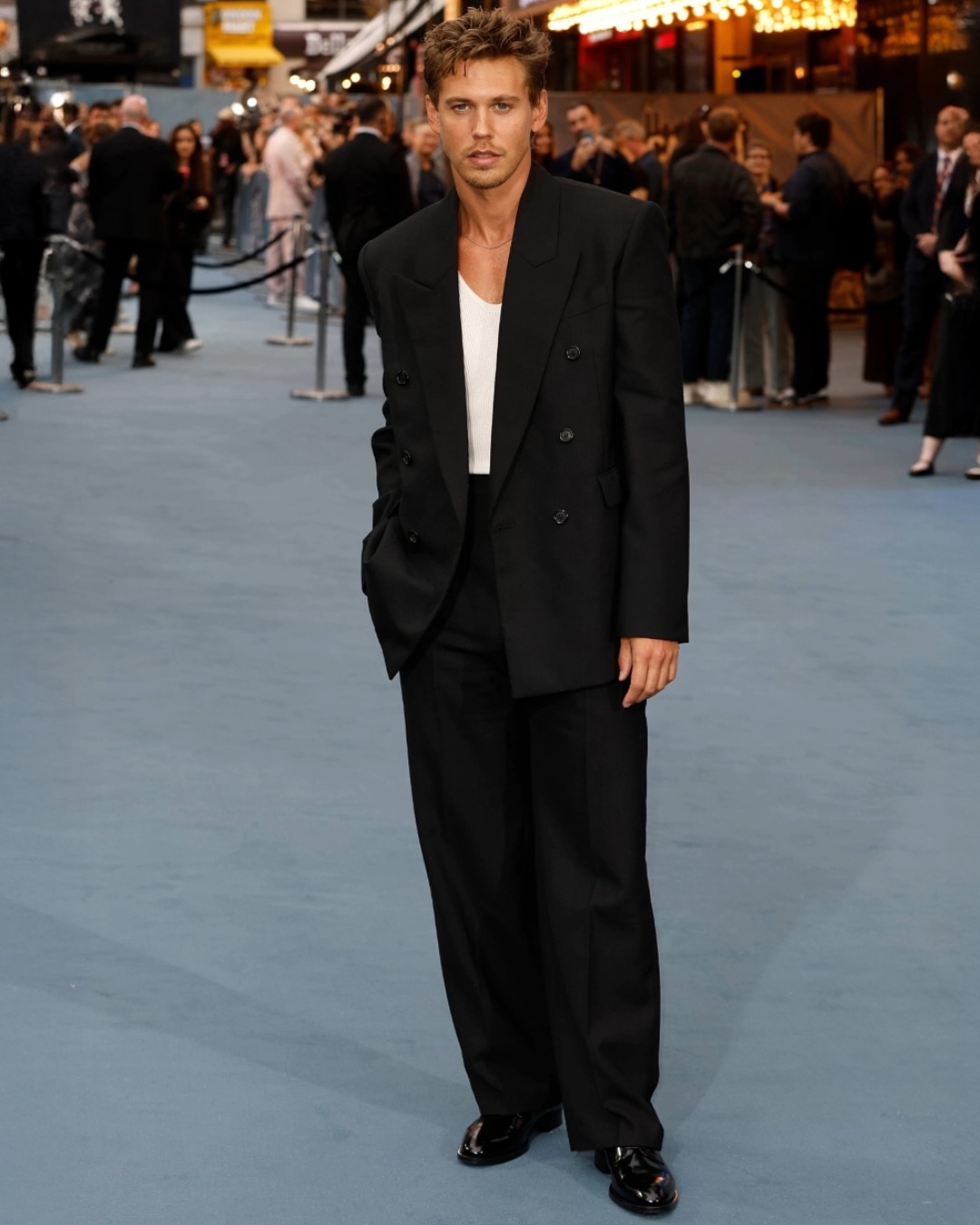 في المقابل، اتجه Butler نحو الطابع الكلاسيكي بلمسة شبابية، حيث ظهر بقميص بفتحة عميقة مع بنطال منخفض الخصر وسترة double-breasted، إلى جانب أحذية Oxford سوداء، جميعها من Saint Laurent. إطلالة تمنح مزيجًا من الأناقة الخالدة مع لمسة عصرية جريئة.