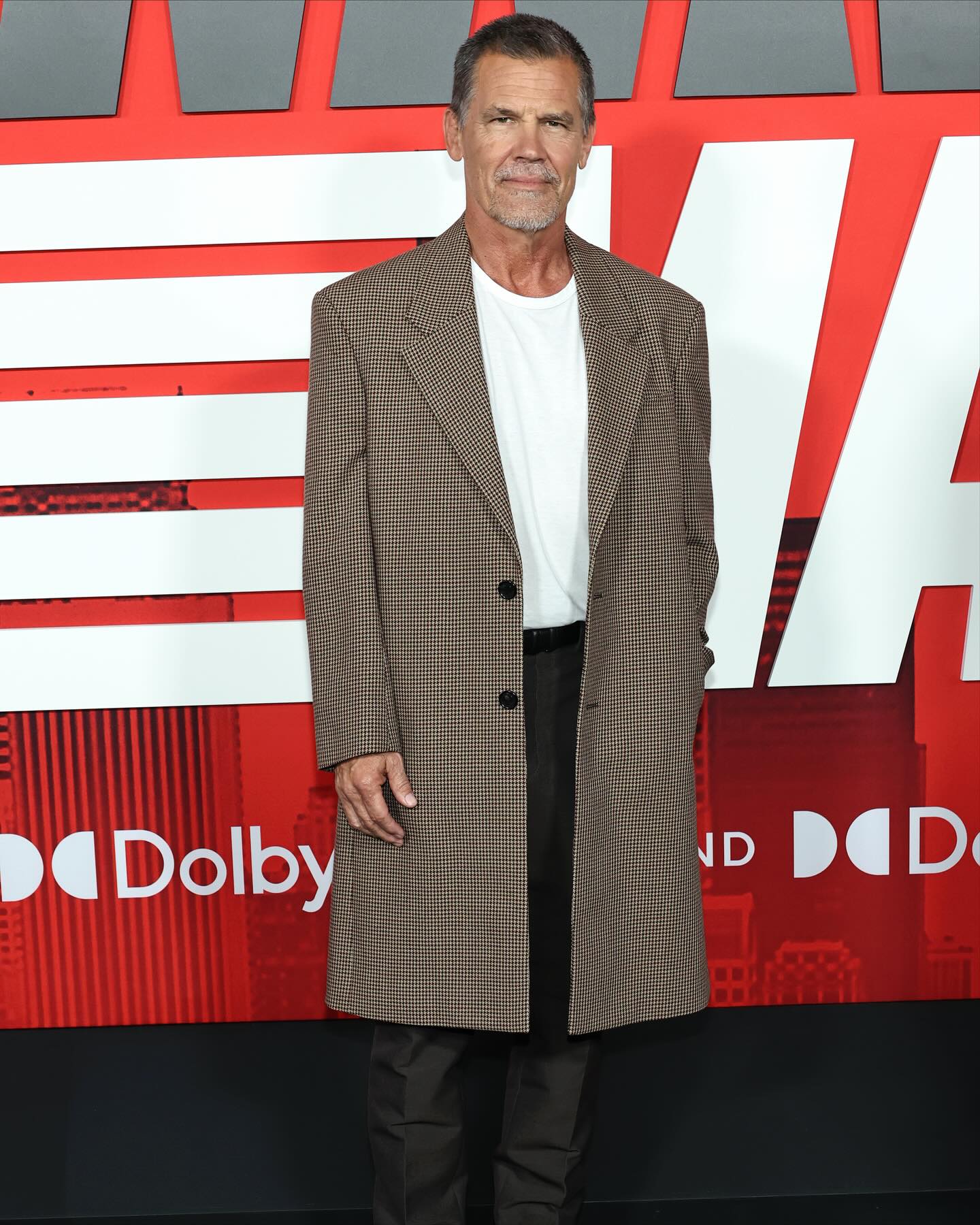 كسر Josh Brolin القواعد الكلاسيكية للبدلة الرجالية باختياره معطفًا طويلاً بنقشة مربعات دقيقة باللون البني، ونسّقه مع تي-شيرت قطني أبيض بدلًا من القميص الرسمي، إلى جانب بنطال داكن مستقيم القَصّة، ما منح الإطلالة طابعًا عمليًا وبسيطًا يبتعد عن الشكل التقليدي للبدلة الرسمية.