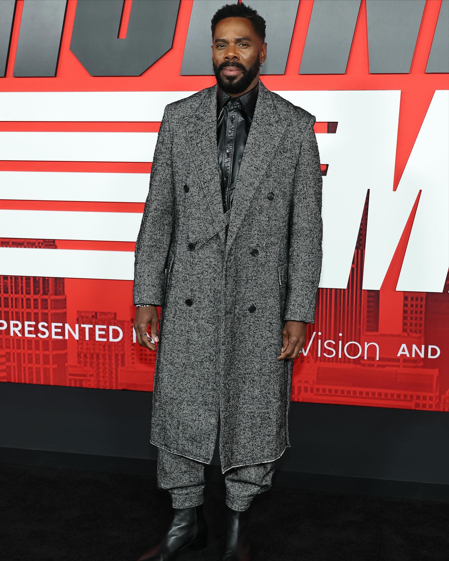 Colman Domingo اختار إطلالة أنيقة وعصرية في آن واحد، حيث ارتدى معطفًا طويلًا مزدوج الصدر بدرجة رمادية ناعمة مع قميص جلدي أسود وبنطال فضفاض بأساور ضيقة من الاسفل. الجمع بين القماش الصوفي والجلد أضفى لمسة عصرية بسيطة، بينما منح التصميم الفضفاض للإطلالة مظهرًا راقيًا ومريحًا في الوقت نفسه.