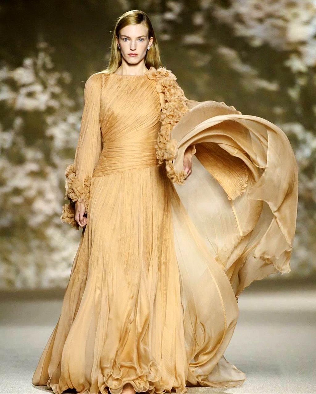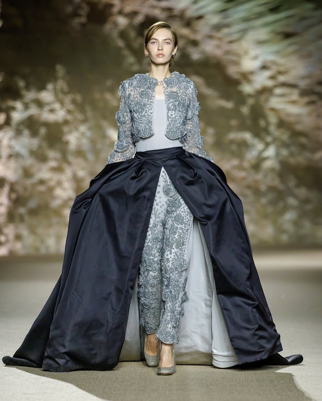 تُعدّ الورود بتفاصيلها الحديثة واحدة من أكثر الصيحات حضورًا هذا الموسم، بصيغتها التي تجمع بين البنية والنعومة وتمنح التصميم عمقًا مرئيًا دون مبالغة. هذه الصيحة اعتمدتها المصممة السعودية أشواق المرشد في مجموعتها الأخيرة “الأصالة”، لكن بمعالجة هادئة تركز على الحِرَفية والدقة قبل الزخرفة.