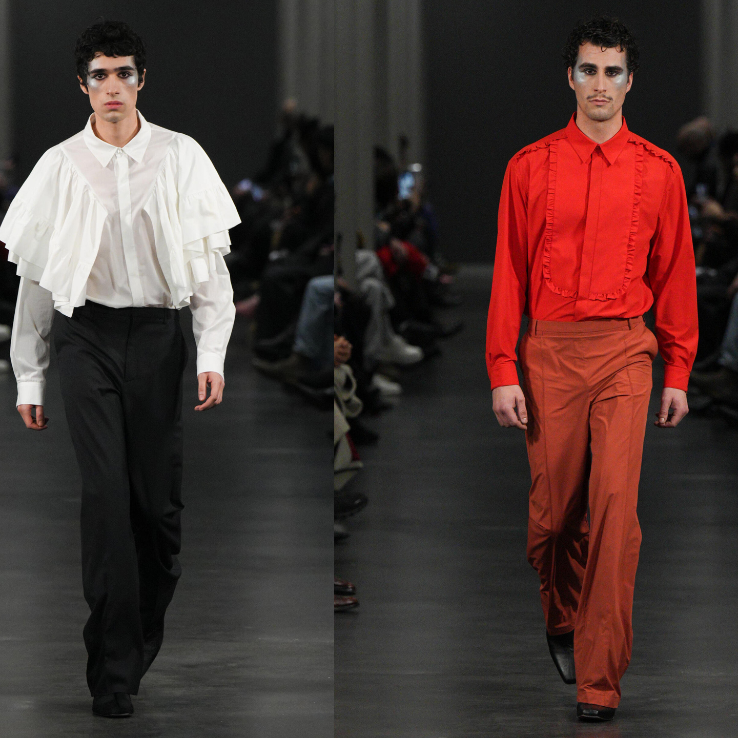 قدّم المصمم Pierre-François Valette مجموعة مستوحاة من أسلوب David Bowie وحركة New Romantics في أوائل الثمانينيات، وسط أداء موسيقي يمزج بين الروك والكمان، ليكون العرض تحية للتاريخ الفني والخيال الرومانسي.