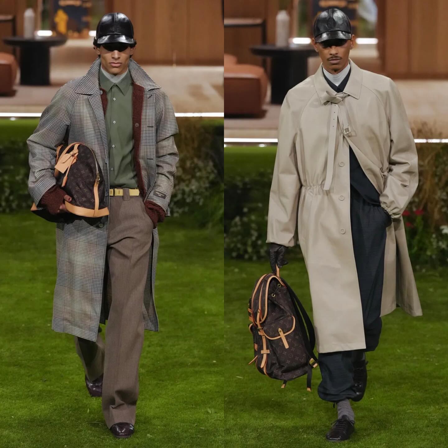 اعتمد Williams على أقمشة تقنية مبتكرة، شملت الأقمشة العاكسة للضوء، الباركازات الحريرية المقاومة للماء، وجاكيت Harrington مضفر بخيوط الألمنيوم، ليجمع بين الأناقة والوظيفة العملية. كما أبرز المصمم Monogram والأكسسوارات في القبعات والحقائب والمعاطف، مع استخدام الحرير والنايلون المعاد تدويره لتحديث الرمز التقليدي للدار، ما جعل المجموعة مثالًا على التوازن بين التراث والابتكار والفخامة المعاصرة.