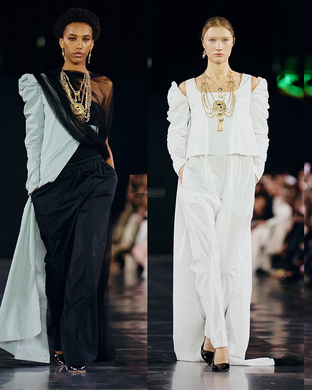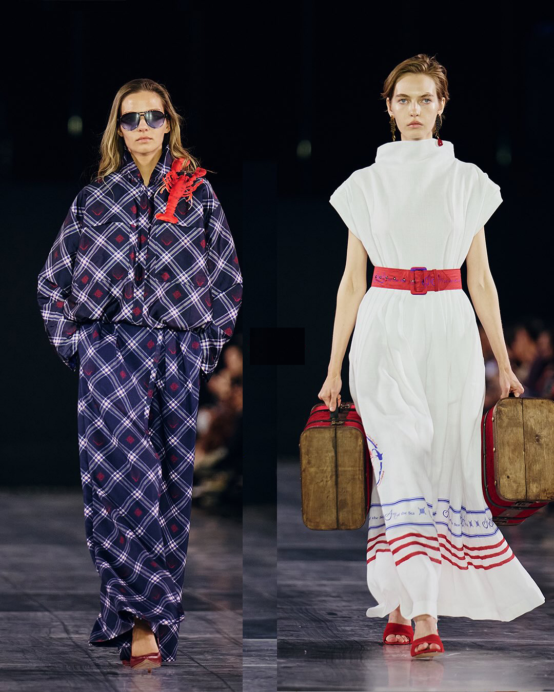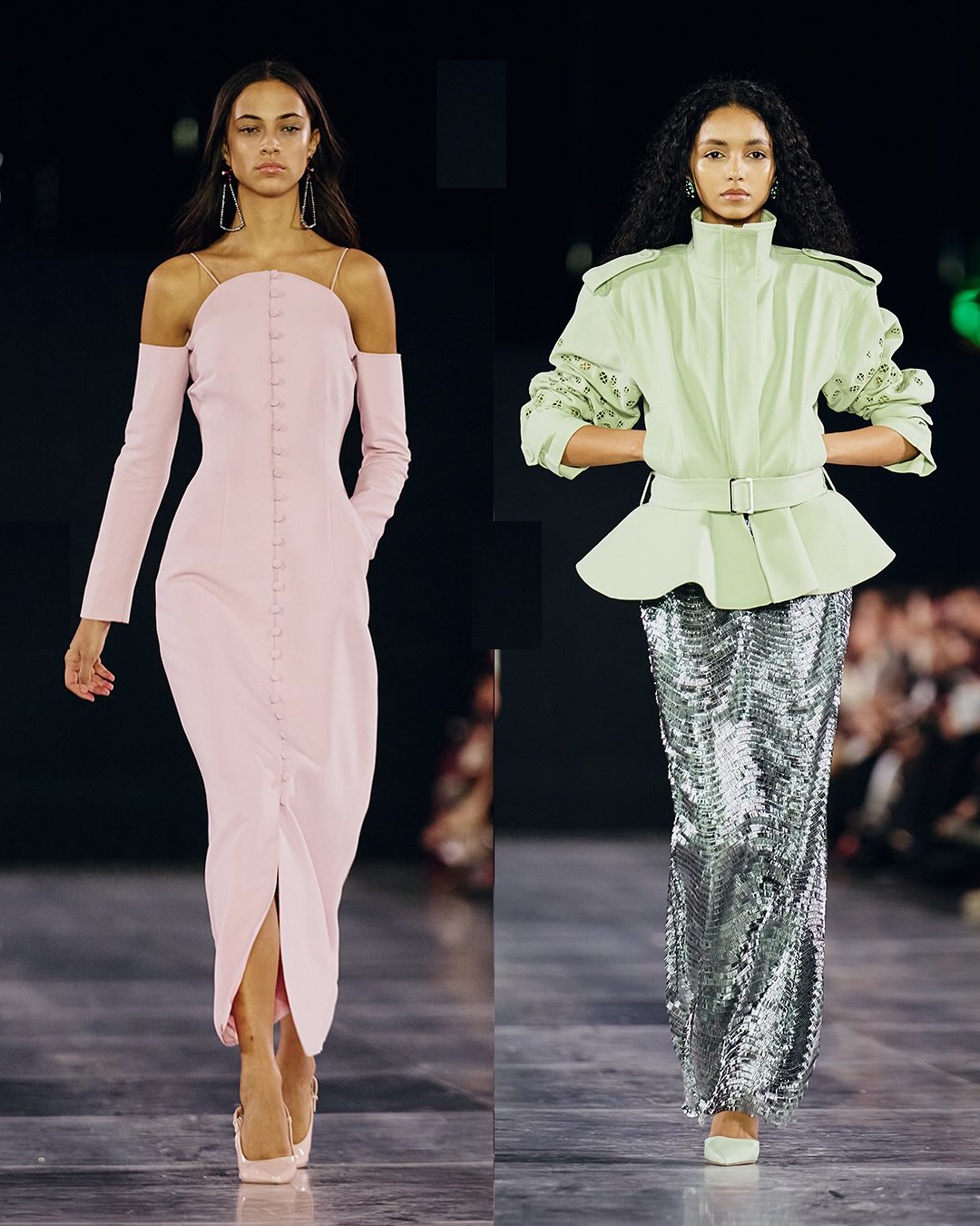 قدّمت أروى العماري من خلال علامتها أرام مجموعة صيفية نابضة بالحياة. الألوان كانت بطلة العرض: البنفسجي الهادئ، الأخضر النعناعي، الأزرق المشرق، مع لمسات من الأحمر الجريء. تصاميم فضفاضة بانسيابية ناعمة، جمعت بين الراحة والرقي، فيما أضافت الكابات الطويلة بُعدًا دراميًا للمشهد، مثل الكاب الأزرق المخطط بالأحمر الذي تحوّل إلى قطعة فنية بحد ذاته. المجموعة عبّرت عن حرية الحركة وحيوية الصيف بلغة عصرية