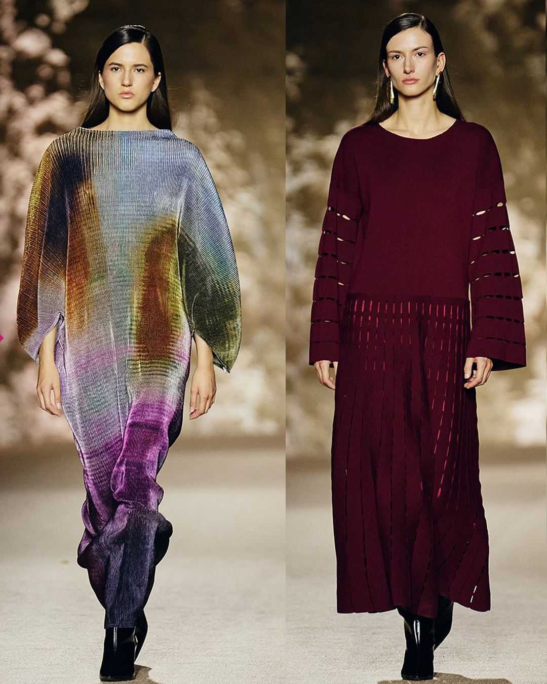 قدّمت Leem مجموعة مميزة تجمع بين الراحة والأناقة، لتناسب المرأة العملية التي تبحث عن إطلالة أنثوية بسيطة وراقية في الوقت نفسه. ضمّت التصاميم فساتين منسدلة وبناطيل واسعة بلمسة عصرية، مصنوعة من أقمشة فاخرة كالساتان والأورغانزا بألوان دافئة تشمل البرغندي واللافندر والبنفسجي الداكن.
