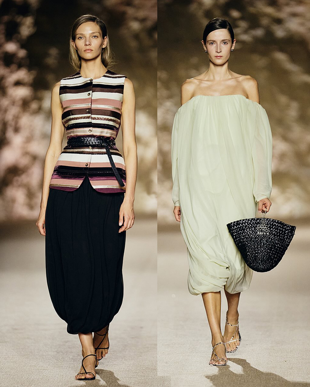 قدّمت دار الأزياء الإيطالية Amen العرض الأول للمديرة الإبداعية الجديدةValentina Nervi مع الدار، في خطوة تعبّر عن بداية مرحلة جديدة من التطور والابتكار. حملت المجموعة بصمتها الخاصة التي جمعت بين العملية والفخامة بأسلوب عصري أنيق، حيث تنوعت التصاميم بين الفساتين القصيرة المصنوعة من الساتان اللامع وتشكيلة مم الجمبسوت، المزينة بلمسات كريستالية ناعمة تضيف بريقاً أنثوياً راقياً. أما لوحة الألوان فجاءت متناغمة وهادئة، بين الأزرق الفاتح والابيض والوردي،