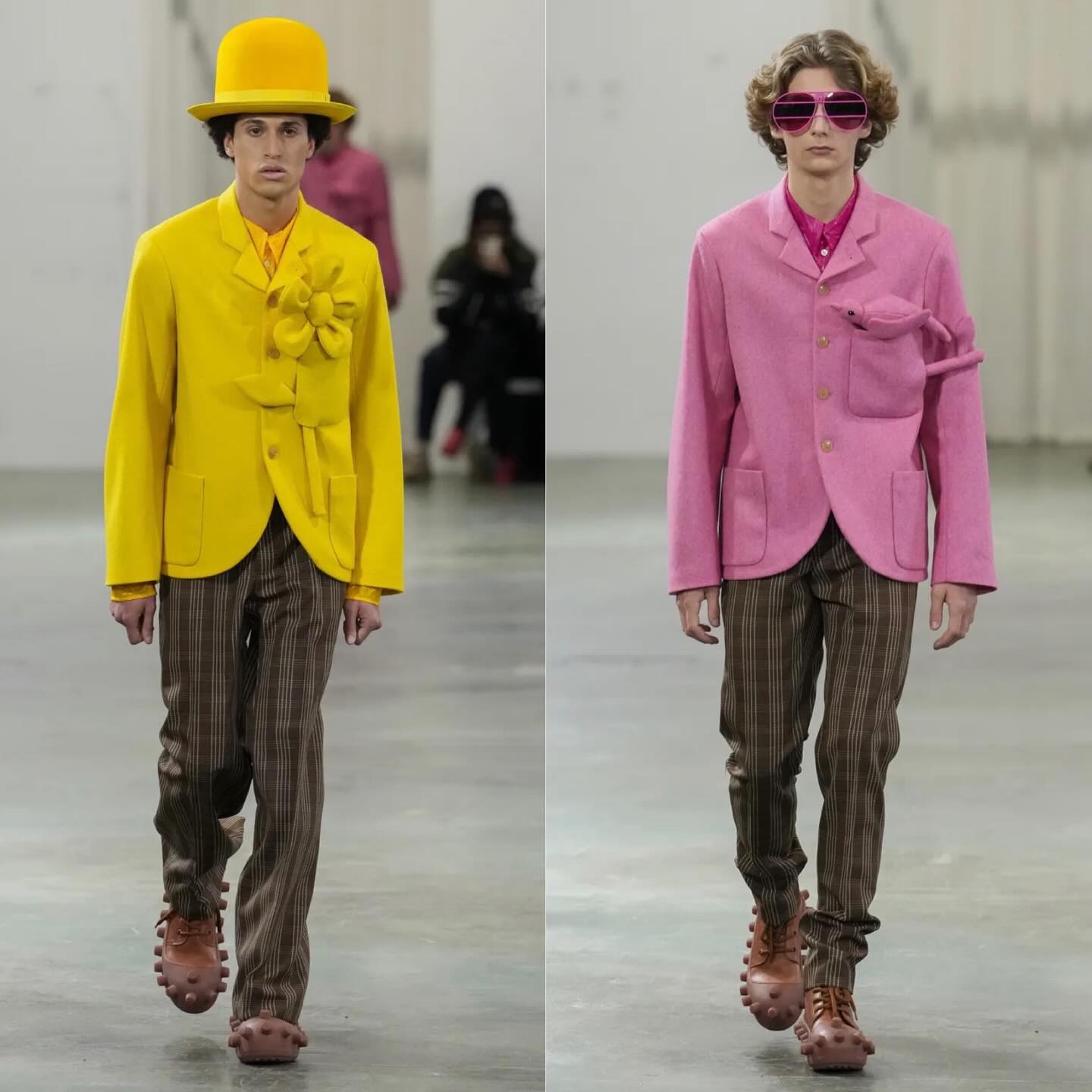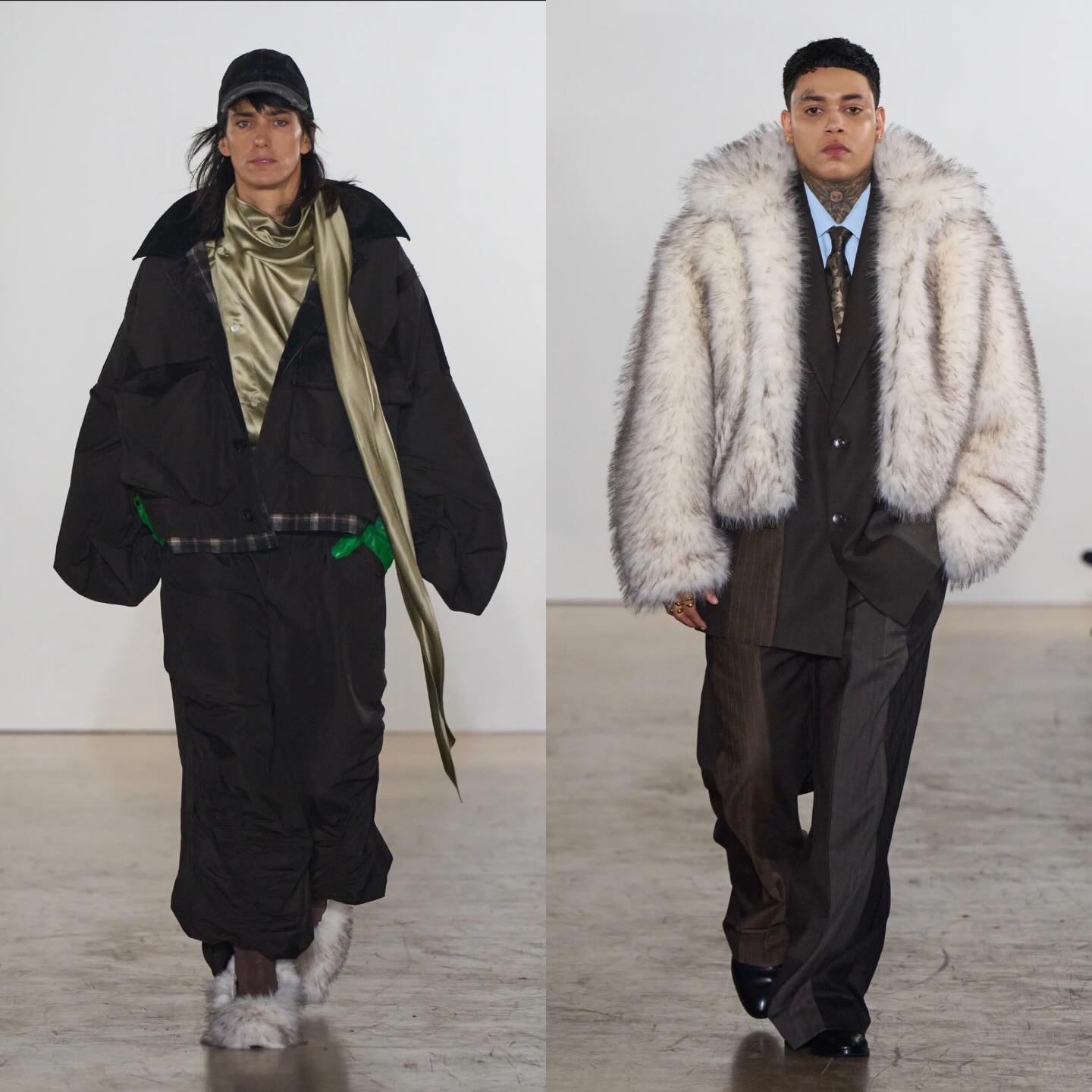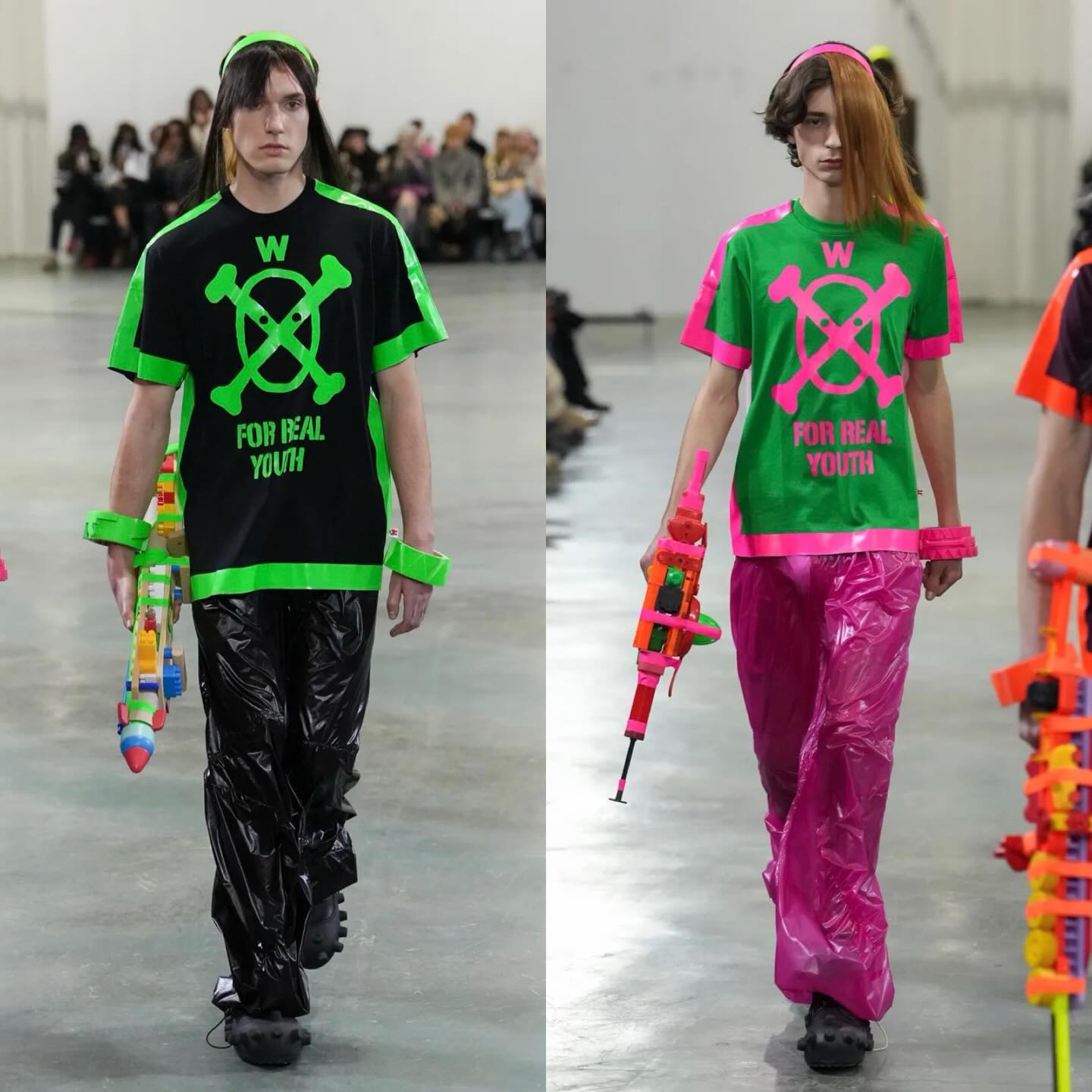 ارتدى العارضون أسلحة لعب وحقائب على شكل كائنات غامضة بالتعاون مع Eastpak، ما يعكس التناقض بين القوة والطفولة، والخيال الواقعي، ووجّه رسالة واضحة عن جيل يرفض القواعد ويحتفي بالاختلاف ويستخدم الموضة كوسيلة تعبير حر وحماية نفسية في عالم رقمي فاقد للحدود التقليدية.