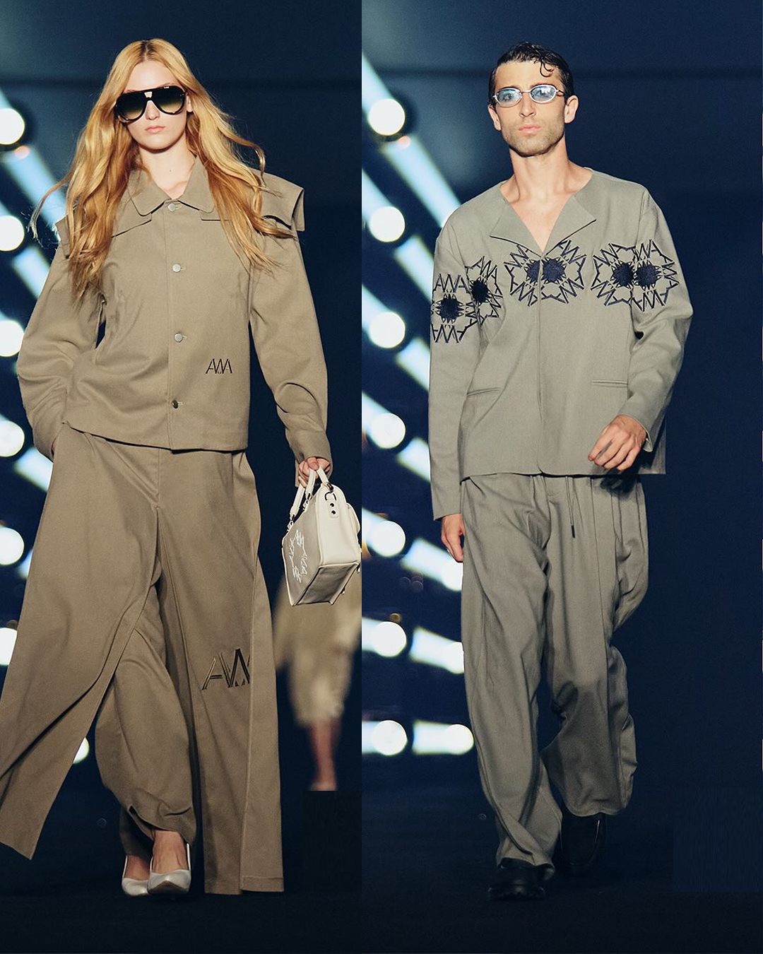 قدّم المصمم خالد المسعود لعلامته Awaken مجموعة عبّرت عن حوار بين الحاضر والمستقبل، حيث جسّدت رحلة بين الأصالة والابتكار من خلال تصاميم رجالية جلدية رمادية مزوّدة بجيوب متعددة تعكس العملية والحداثة، وتنسّقت مع أحذية جلدية سوداء لامعة وروب قصير فوق البدلات التقليدية لإضفاء لمسة غير مألوفة، إلى جانب قمصان حريرية بياقات مفتوحة تعبّر عن الرجل العصري المتوازن بين الرصانة والانسيابية.