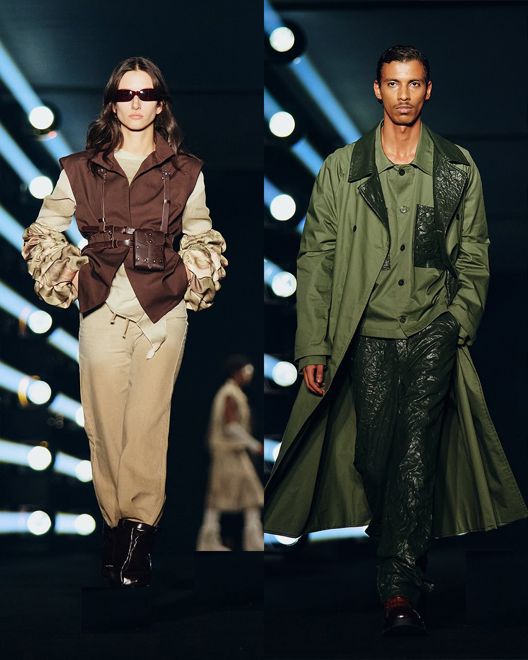 قدّمت علامة ELEVEN مجموعتها بإدارة مازن محمد لخريف وشتاء 2026 بعنوان “Sons of the Desert”، مستوحاة من روح الصحراء وأناقة الحياة العصرية. تميّزت القصّات بطابع عملي ومريح يشمل المعاطف المنفوخة، والسترات بدون أكمام، والهوديز، والملابس الرياضية والكاجوال، مع لمسات أنثوية في الفساتين البسيطة المنسقة مع المعاكف. أما لوحة الألوان فجاءت مستوحاة من الصحراء وعمارة الرياض الحديثة، بتدرجات البيج الرملي، والبني، والرمادي الأسمنتي، والأسود الأنيق، تتخللها لمسات من الأرجواني الدافئ والأحمر الناري تعكس ألوان الغروب في الرمال.