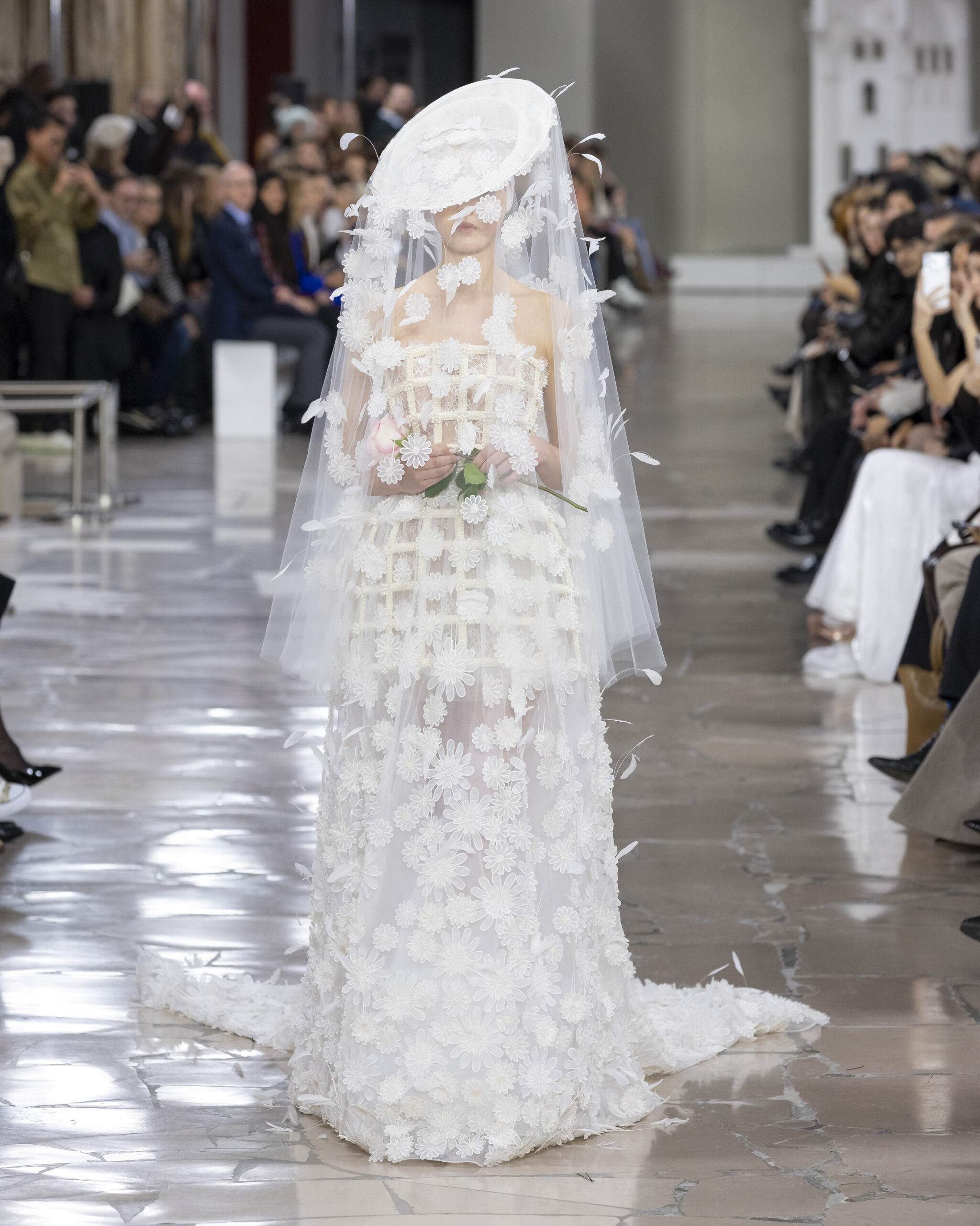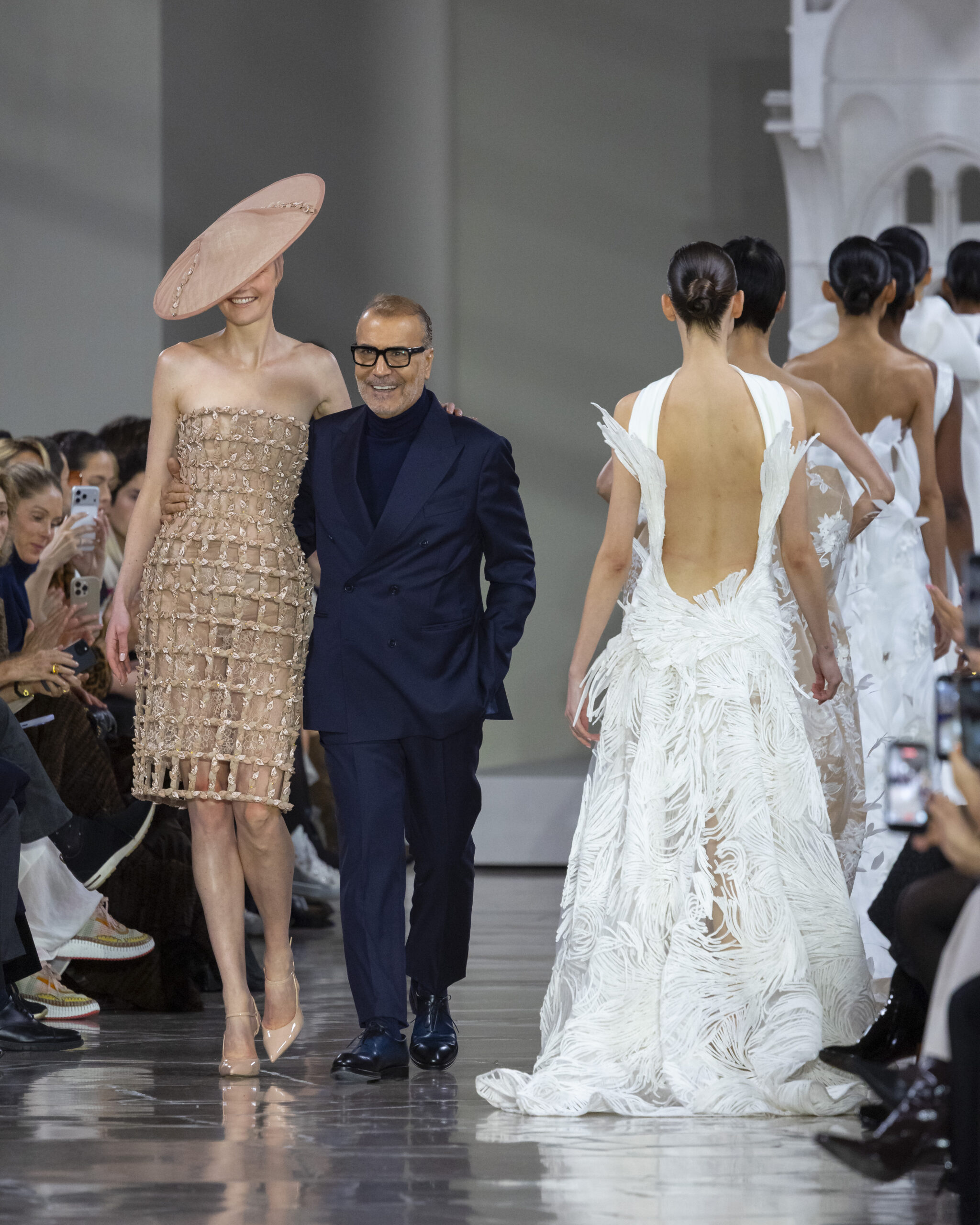 واكتملت الصورة بإكسسوارات ذات طابع مسرحي، مثل القبعات الدائرية الكبيرة والقفازات الشفافة أو المطرّزة، في استحضار ذكي لأناقة الماضي بقراءة معاصرة.