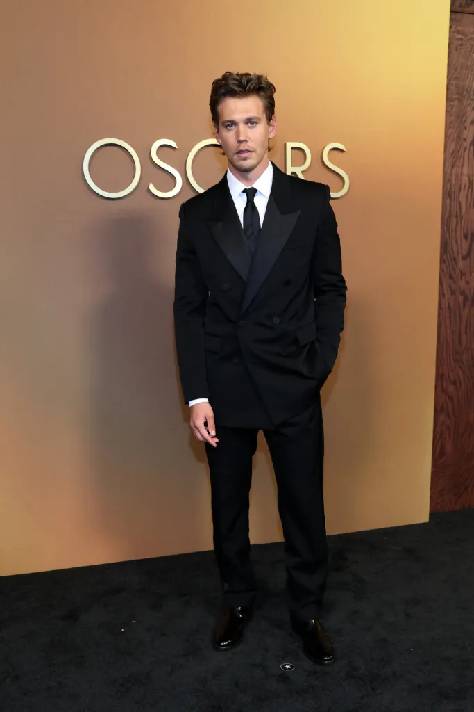 ارتدى بدلة سوداء مع قميص أبيض وربطة عنق سوداء تمامًا بأسلوب كلاسيكي مشابه لإطلالات دي كابريو وأوسكار، لكن مع لمسة Saint Laurent المميزة.