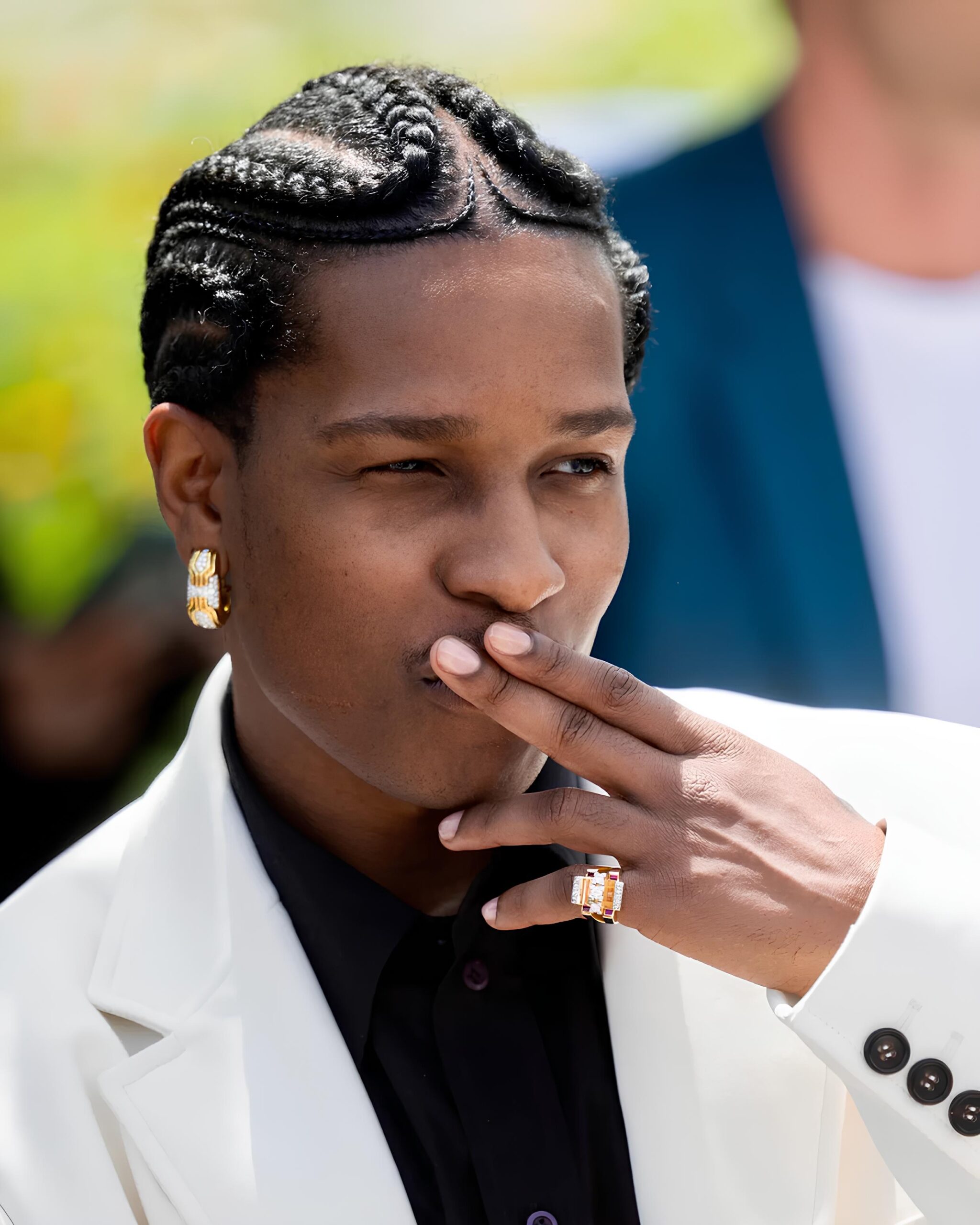 دائمًا ما يعتمد A$AP Rocky على خاتم الخنصر ليكون القطعة الأبرز في إطلالاته. وفي مهرجان كان السينمائي 2025، خطف الأنظار بخاتم من Bulgari مرصّع بالألماس والياقوت الوردي، في إطلالة تؤكد مجددًا مكانة خاتم الخنصر كعنوان لأسلوبه الخاص