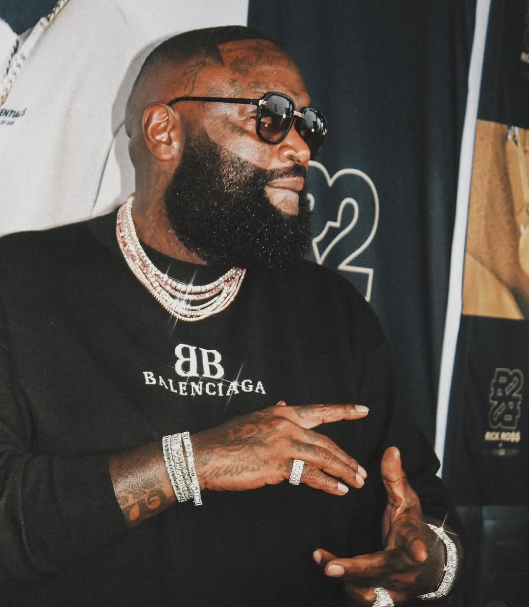 النجم الأميركي Rick Ross جعل من خاتم الخنصر جزءًا ثابتًا من هويته في عالم الراب. كثيرًا ما يطلّ في حفلاته بأكثر من خاتم مرصع بالألماس والذهب، مؤكدًا أن هذه القطعة ليست مجرد إكسسوار بل إعلان واضح عن النجاح والهيمنة. كما أشار في إحدى أغنياته الشهيرة: “Kiss my pinky ring, I am king.”