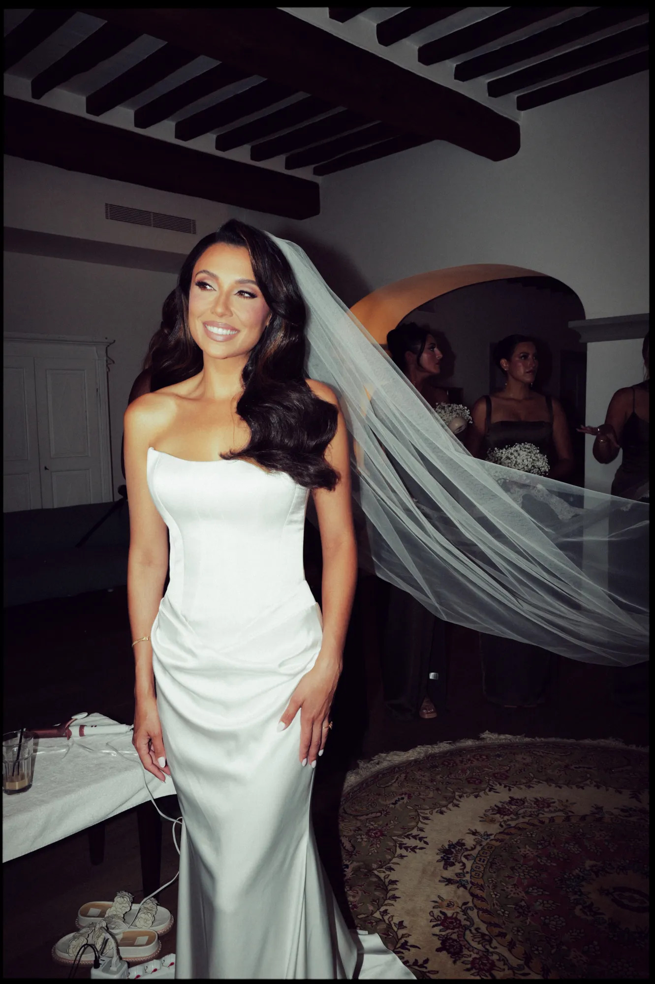 خلال المراسم المسيحية القبطية، ارتدت العروس فستانًا من Lihi Hod مع حذاء من Christian Louboutin وسوار ماسي من جدتها، ثم بدلت إطلالتها إلى فستان أبيض ناعم من Marquise Bridal مع مجوهرات من Maya Brenner في حفل الاستقبال.