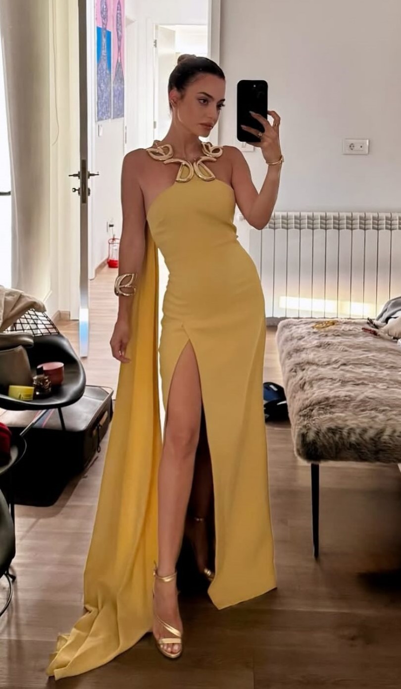 بعد انتهاء المراسم الرسمية، انتقل الحضور إلى منتجع فقرا. هناك، استُكمل الحفل وسط أجواء راقية وهادئة. ومن بين أبرز الضيوف، لفتت النجمة التركية هاندا أرتشيل الأنظار، حيث ظهرت إلى جانب رئيس تحرير Fashion News Arabia. تألقت بفستان من أرشيف إيلي صعب، يعود إلى مجموعة ربيع 2003. تميّز التصميم بتطريزات ناعمة من الورود الحمراء، وأوراق خضراء بحواف ذهبية، على خلفية بيج هادئة. إطلالة كلاسيكية تُعيد إلى الأذهان البدايات الأولى للدار.