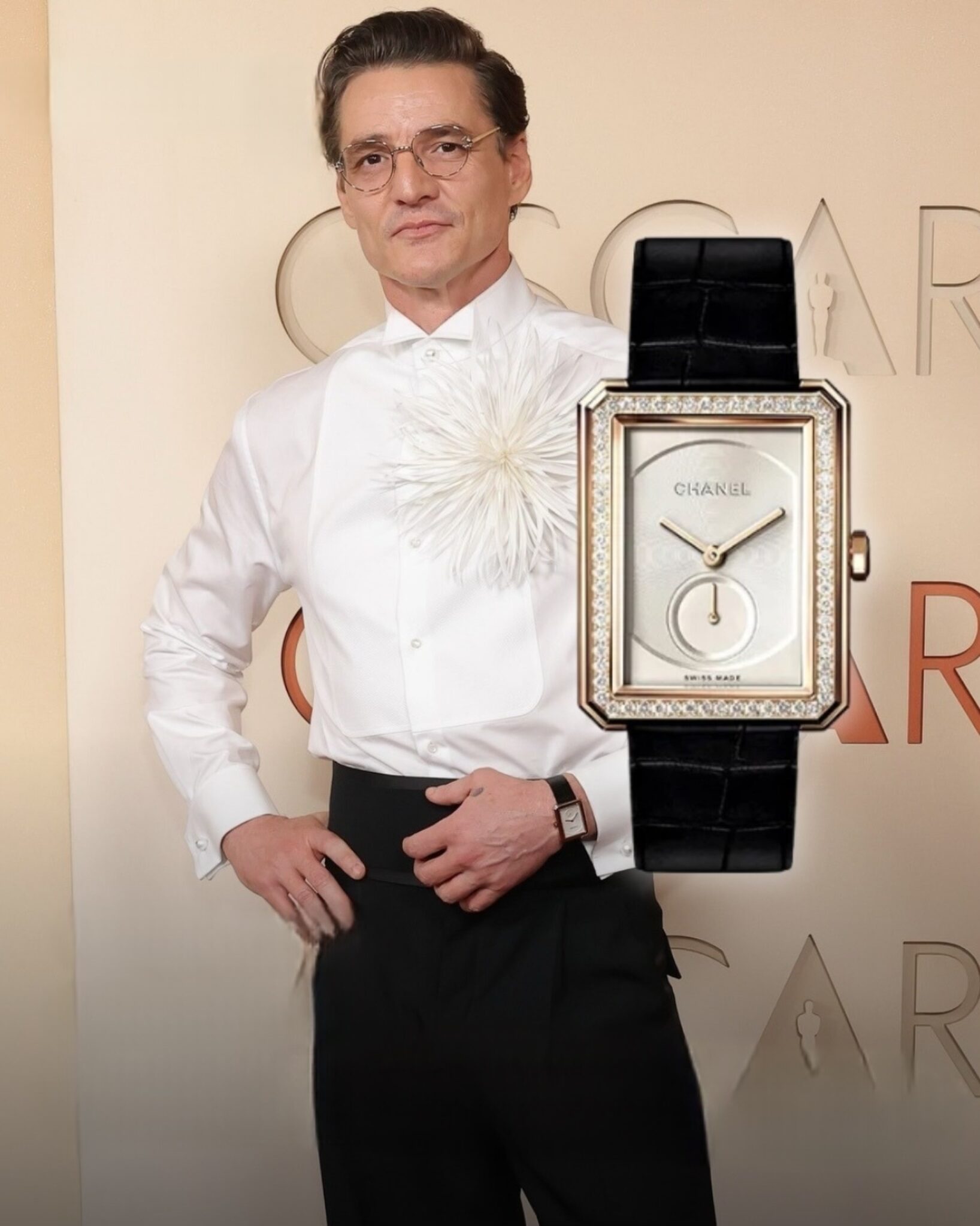 من جهته، اعتمد بيدرو باسكال على ساعة Chanel BOY·FRIEND المصنوعة من ذهب BEIGE GOLD، مستوحاة من الخطوط الرجالية الكلاسيكية مع لمسة عصرية ناعمة تعكس هوية الدار، لتضفي على إطلالته الفخامة والحداثة في الوقت ذاته.