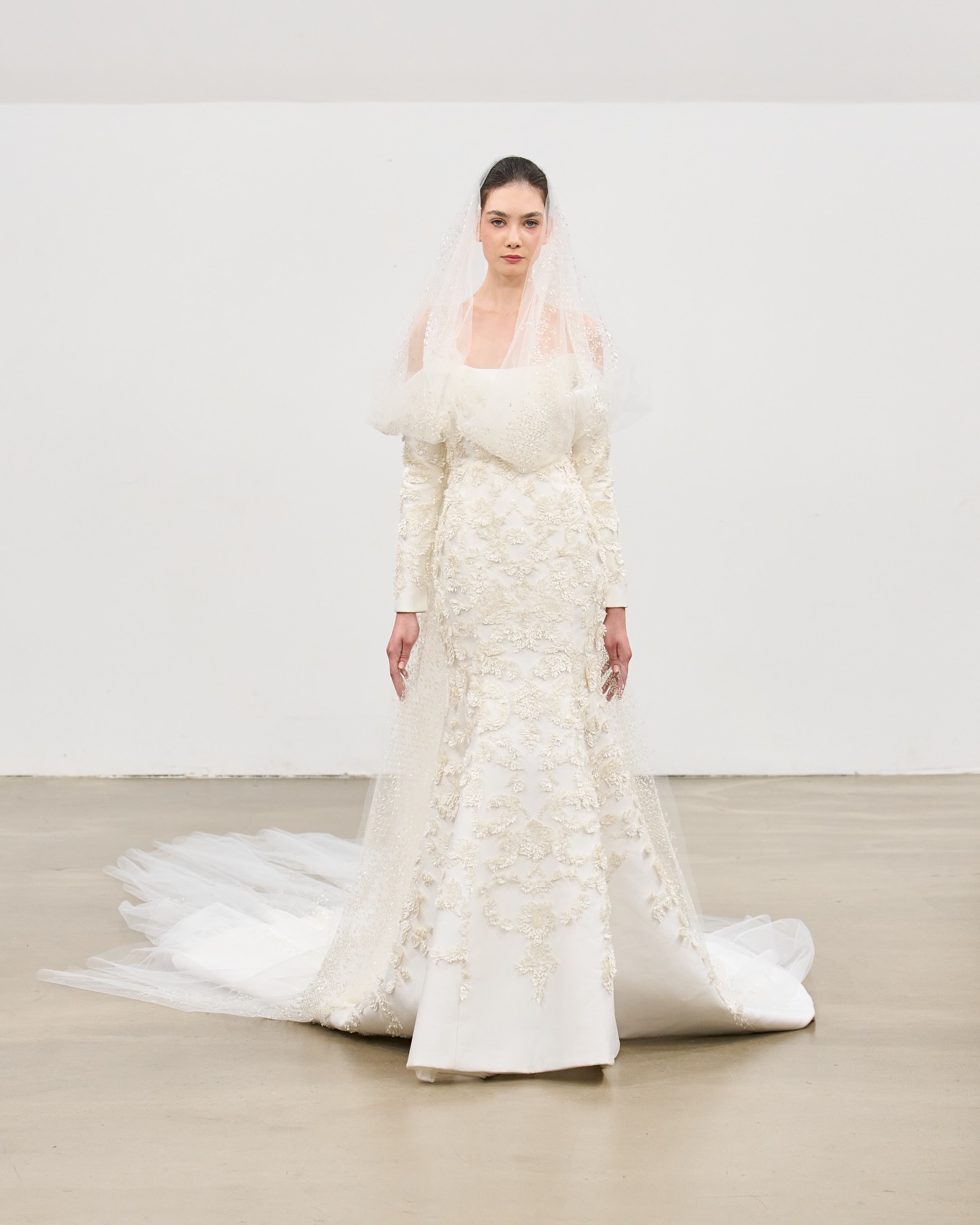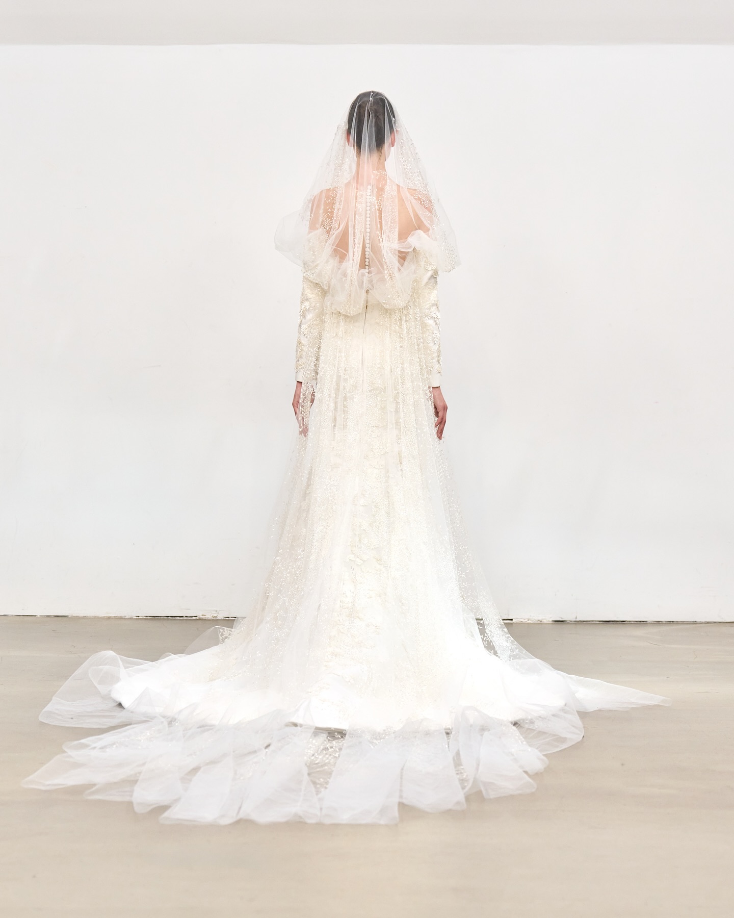 قدّم رامي العلي العروس في باريس بإطلالة ملكية ناعمة، بفستان أبيض مطرز يدويًا بتفاصيل وردية راقية، مع ذيل طويل وحجاب شفاف يضيف لمسة حالمة، ليجعل من العروس لوحة من الأناقة الهادئة والفخامة العصرية.