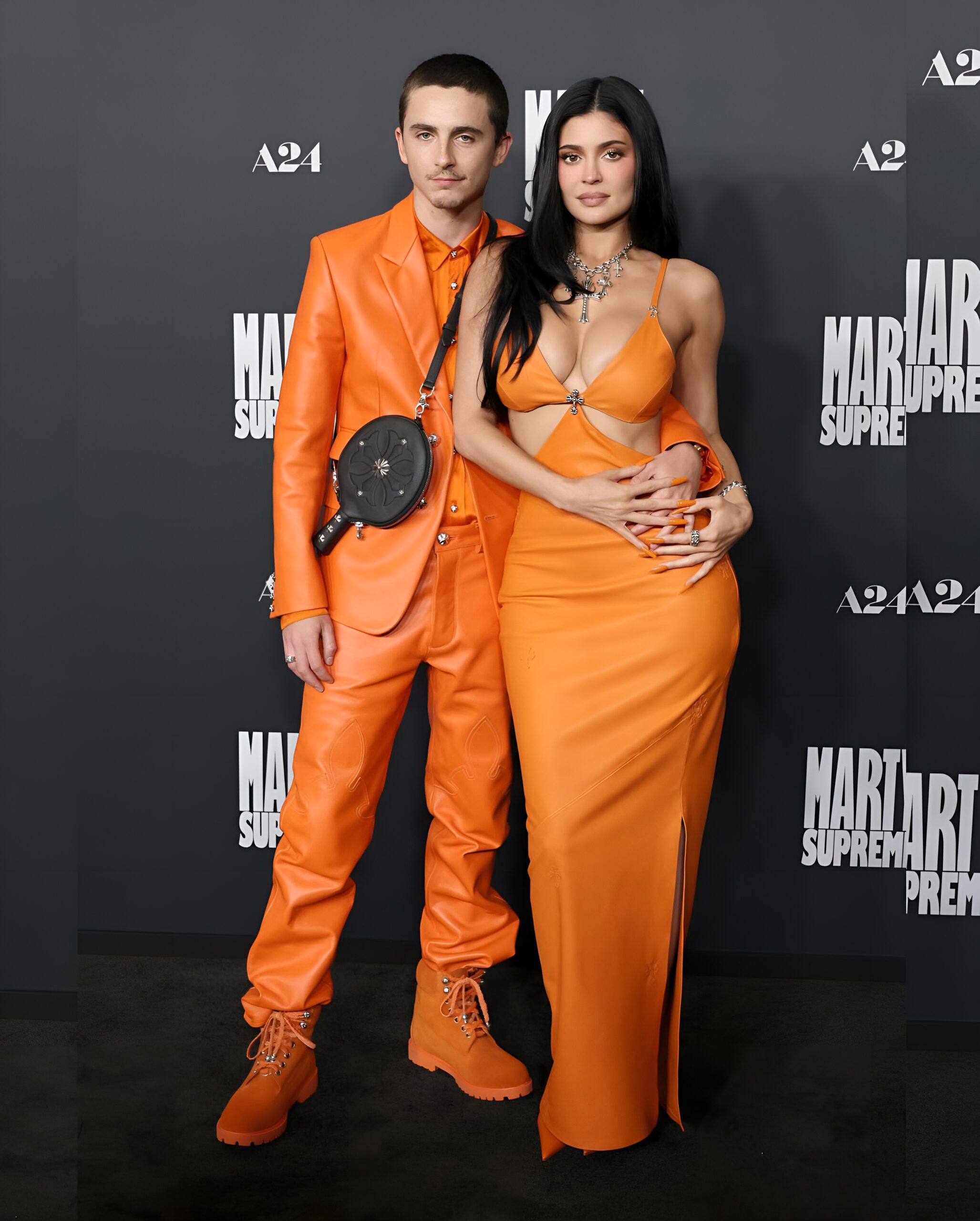 أبرز مثال على ذلك كانت إطلالة Kylie Jenner وTimothée Chalamet باللون البرتقالي الزاهي، التي ارتبطت بجولة الصحافة لمجموعة Marty Supreme، حيث لم يكن الهدف مجرد الظهور بشكل جميل، بل إرسال رسالة قوية تعكس حضورهم وتأثيرهم في عالم الموضة.