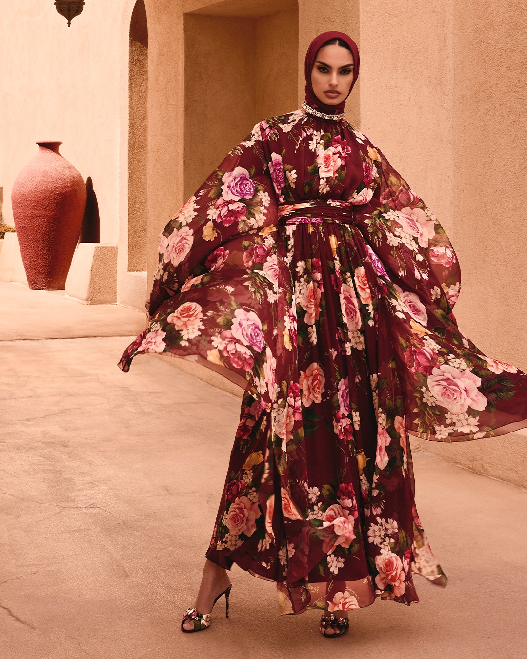 برزت حملة Dolce & Gabbana بمشاركة سفيرة العلامة والممثلة Huda El-Mufti، حيث مزجت التصاميم بين فخامة الدار والخطوط الفضفاضة المستوحاة من الصحراء، كما في القفاطين والفساتين المسائية.