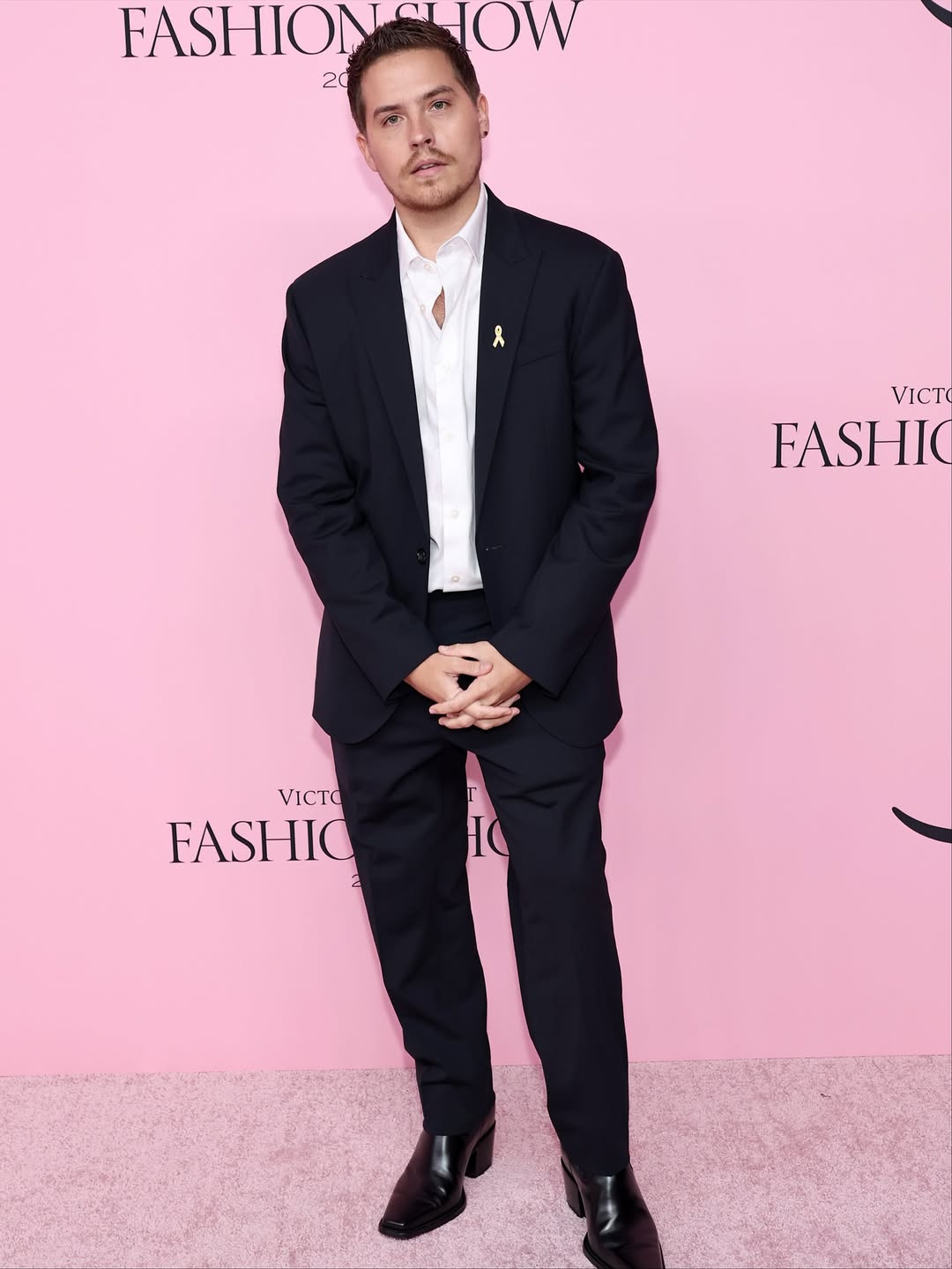 بينما Dylan Sprouse اختار إطلالة كلاسيكية بلمسة عصرية، مرتديًا بدلة سوداء أنيقة مع قميص أبيض مفتوح الياقة أضاف له لمسة من التمرّد الأنيق. مظهر بسيط لكنه مليء بالثقة والستايل العصري. حضوره كان مميزًا بجانب زوجته Barbara Palvin التي خطفت الأنظار في العرض.