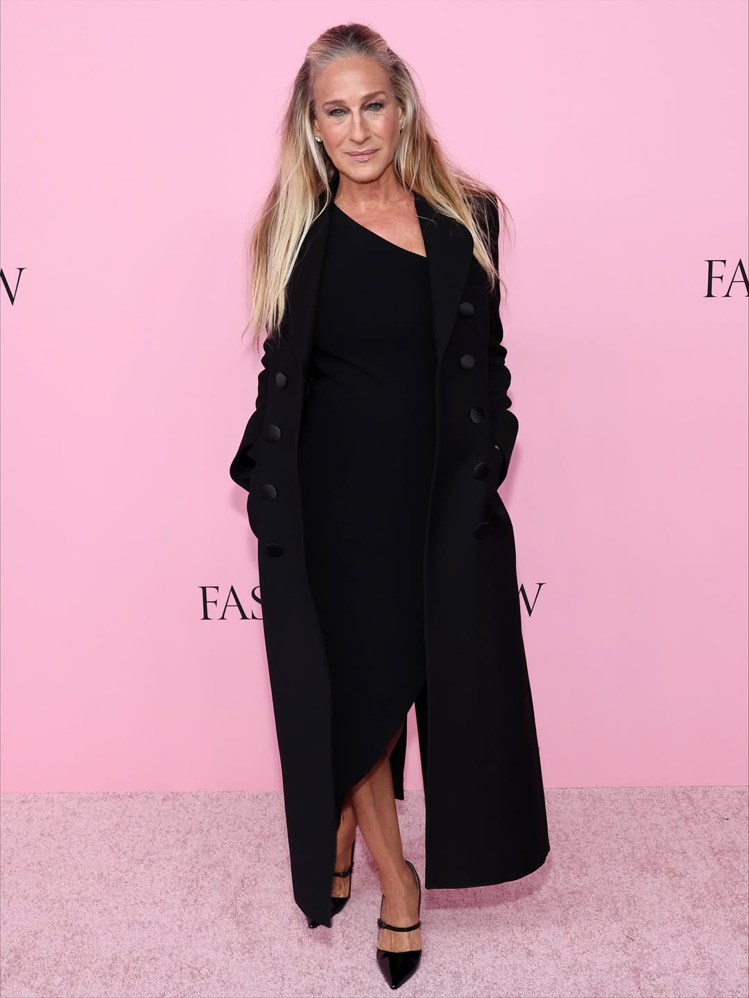 من بين أبرز الحضور، تألقت Sarah Jessica Parker بإطلالة سوداء أنيقة. ارتدت معطفًا أسود من Dolce & Gabbana مع بنطلون من Alexander Wang، ونسّقت الحذاء من علامتها الخاصة. لوك باريسي الملمس بنكهة نيويورك الأصلية، يعكس تمامًا شخصية بطلة Sex and the City في نسخة أكثر نضجًا وأناقة.