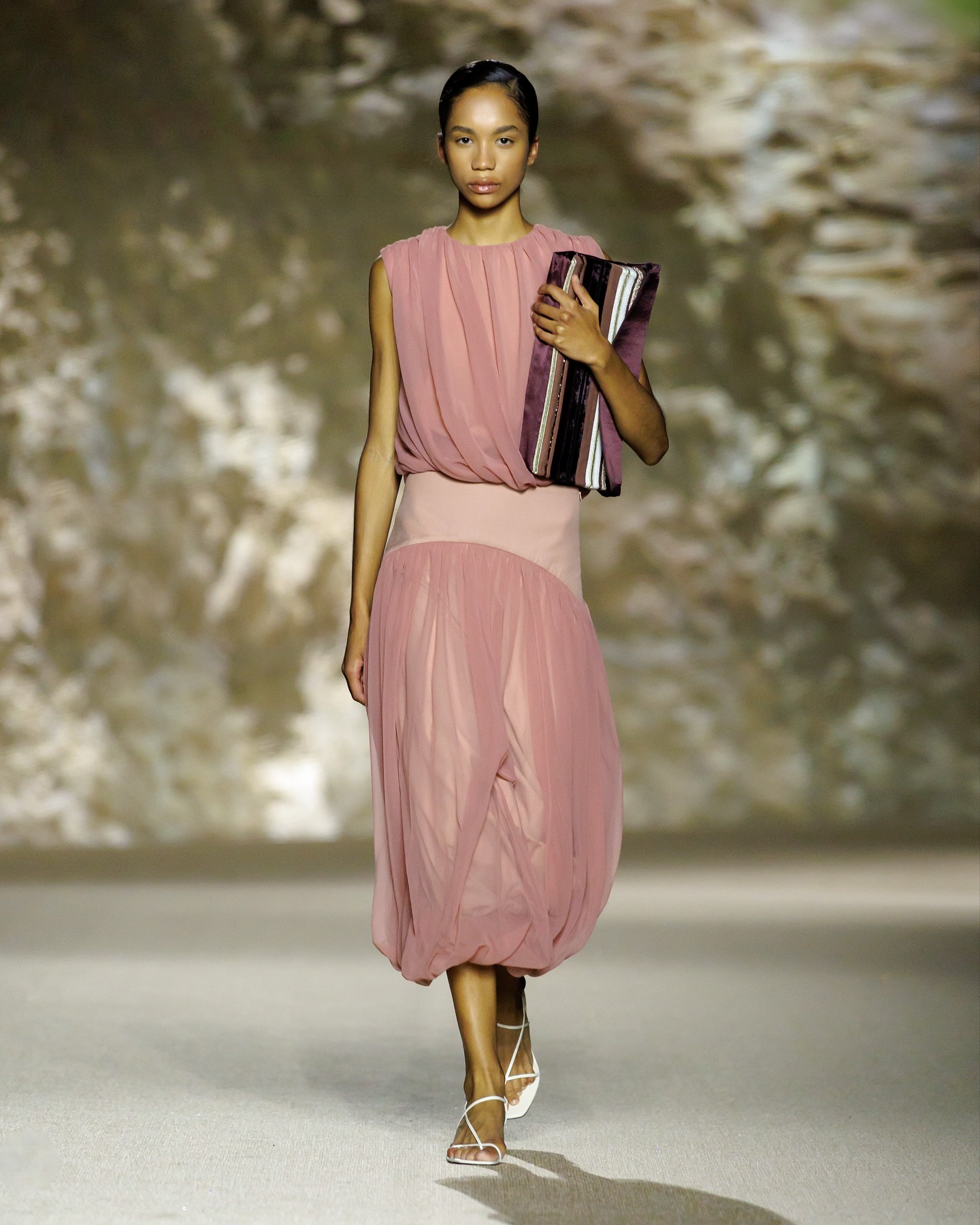 تنوعت تصاميم المجموعة بين التنانير والفساتين والجاكيتات ذات القصّات الانسيابية والأقمشة المتدفقة التي تحاكي حركة الأمواج. أما لوحة الألوان فجاءت مستوحاة من درجات البحر وأعماقه، بين الداكن والفاتح، مع حضورٍ خاصّ للّون الأبرجين والأخضر.
