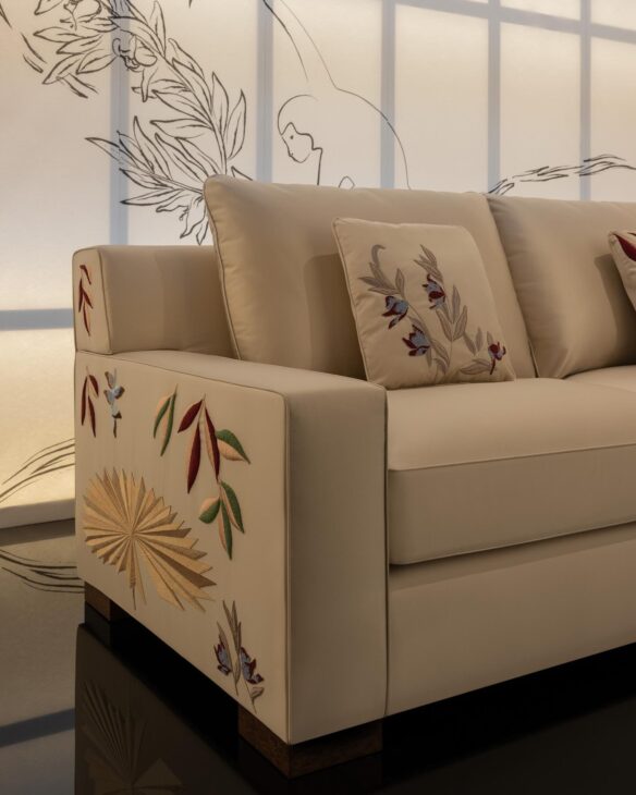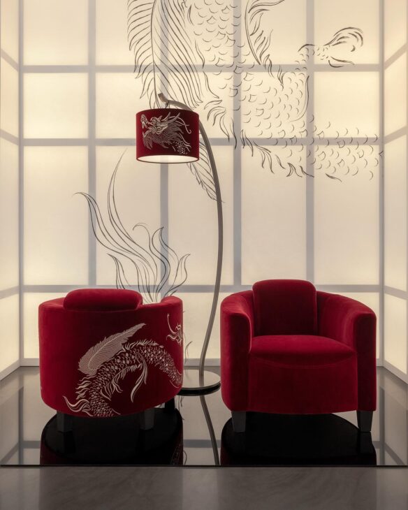 تضمنت مجموعة “Oriental Inks” قطعًا مميزة مثل أسرّة حريرية مزينة بنقوش التنين، وأرائك ذات تطريزات مستوحاة من أجواء حقبة “Bridgerton”. هذا الربط بين الماضي الكلاسيكي والرؤية المعاصرة يعكس فلسفة الدار في المزج بين التراث والابتكار في عالم التصميم الداخلي. وتعمل هذه المجموعة على تقديم تجربة بصرية تجمع بين الفخامة والرقي، مع لمسات فنية تعكس تأثيرات الشرق الأقصى.