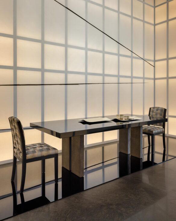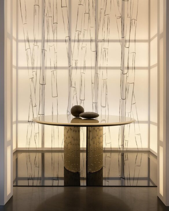 خلال مشاركتها في أسبوع ميلانو للتصميم 2025، احتفلت Armani بمرور خمس سنوات على تأسيس علامتها الخاصة في عالم التصميم الداخلي. وكشفت العلامة عن مجموعة استثنائية جديدة بعنوان “Oriental Inks”، بالتعاون مع دار التصميم الفنية de Gournay. أقيم العرض داخل متجر Armani الفاخر في كورسو فينيتسيا – Corso Venezia في ميلانو، الذي تحول إلى فضاء إبداعي مزدان بألواح من ورق الأرز لتعكس الطابع الشرقي للمجموعة الجديدة.