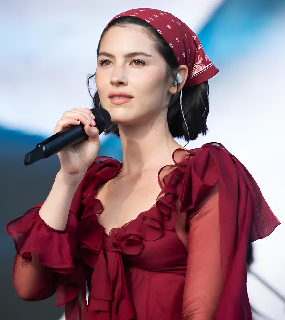 من جهتها، ظهرت Gracie Abrams خلال مشاركتها الأولى في Glastonbury 2025 بإطلالة لافتة. فقد اختارت فستانًا برغندي أنيقًا ونسقته مع Bandana باللون نفسه. وبذلك أضاف هذا التنسيق انسجامًا بصريًا وحضورًا عفويًا وأنيقًا على المسرح.