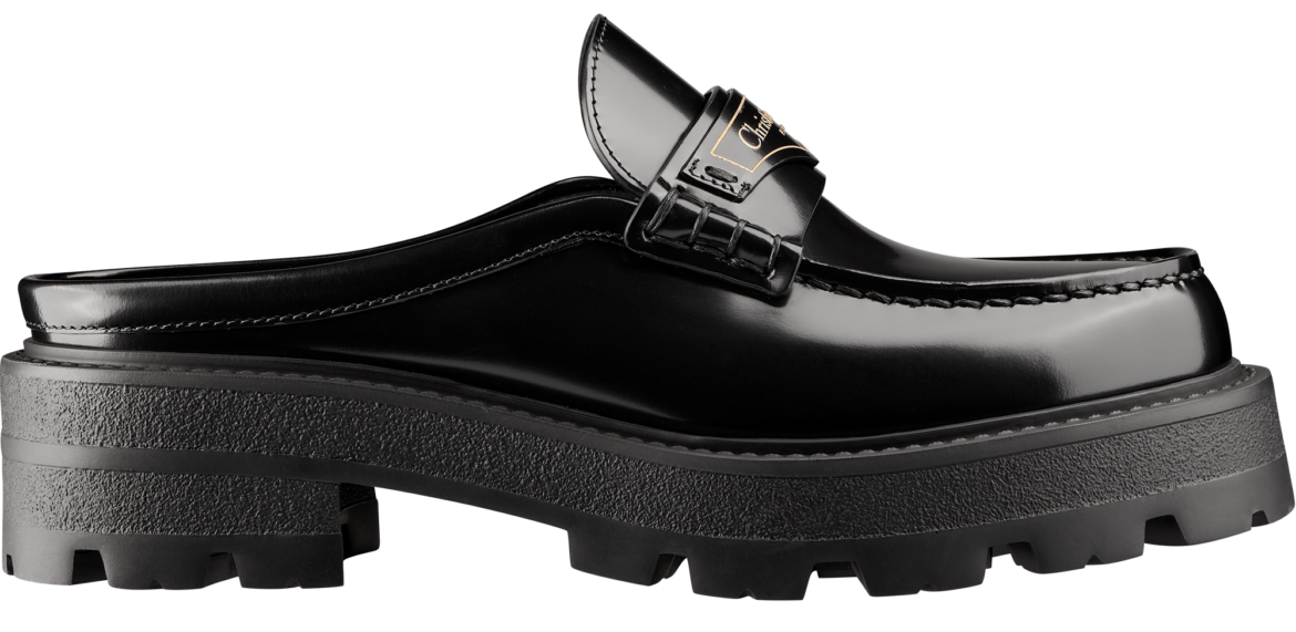 أما الثاني فهو حذاء Mule مفتوح من الخلف بنعل خفيف مصنوع من جلد العجل الأسود أو السويد مع تفاصيل محفورة تجسد براعة الحرفيين وشغف الدار بالحرفية الدقيقة.