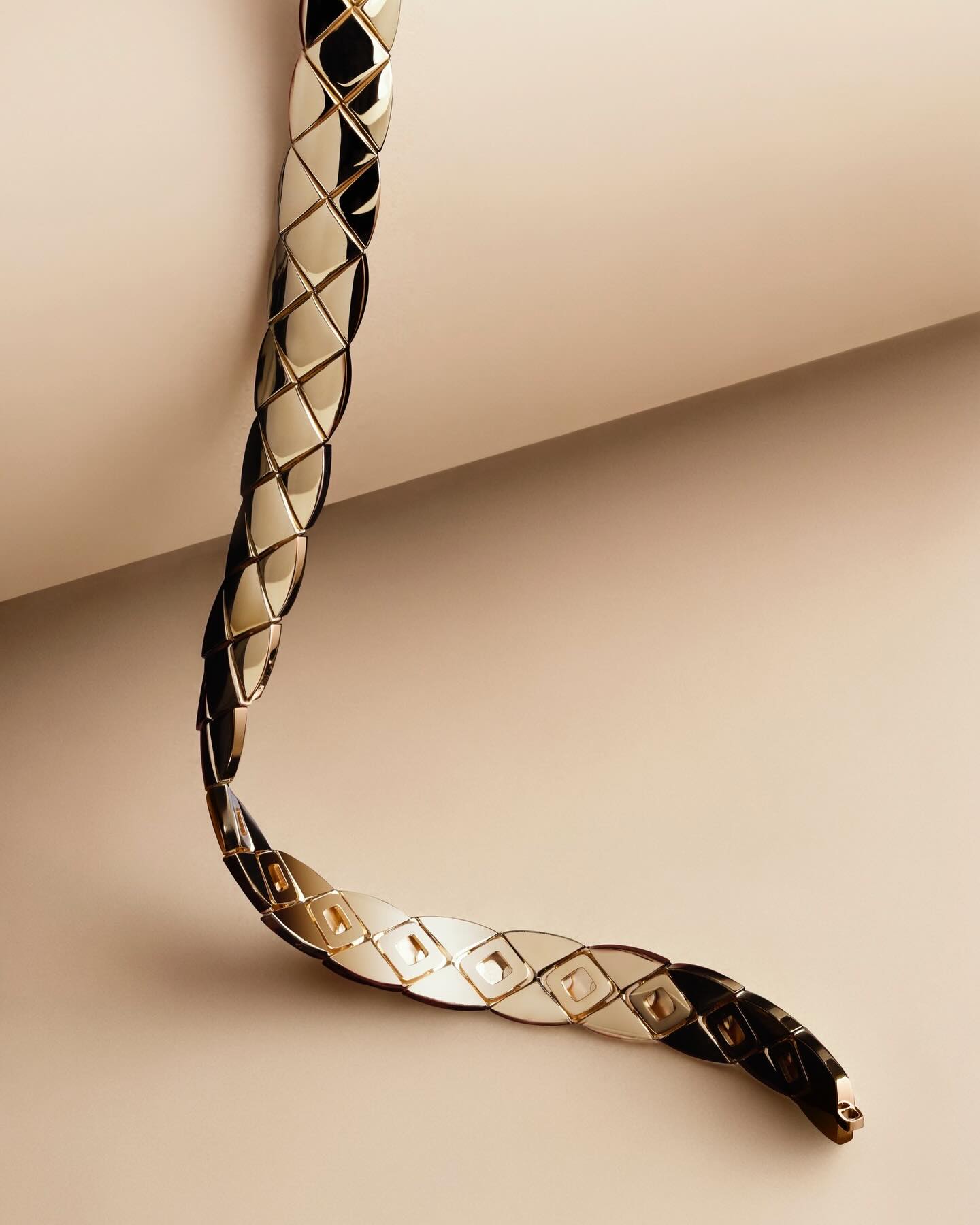 تستمد مجموعة Coco Crush إلهامها من نقشة matelassé، التي تُعد رمزًا أيقونيًا لدار Chanel منذ عام 1955. وبالإضافة إلى ذلك، تضم المجموعة خواتم، أساور، قلائد، وأقراط مصنوعة من Beige Gold، Yellow Gold، وWhite Gold. وبعضها مرصّع بالألماس، ما يخلق مزيجًا يجمع بين الفخامة الكلاسيكية والطابع العصري.