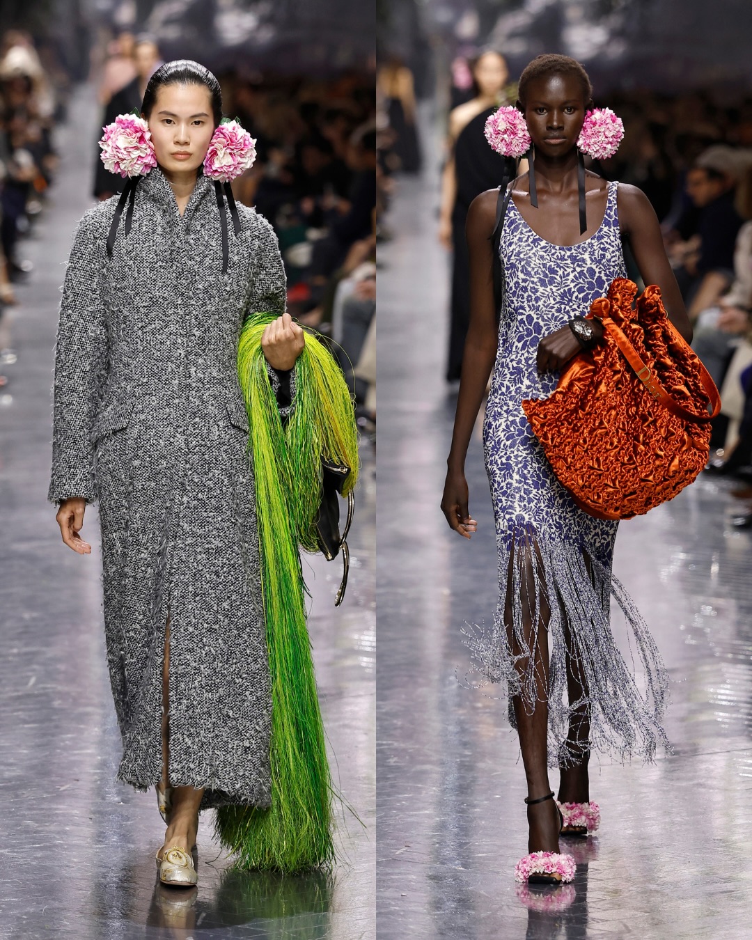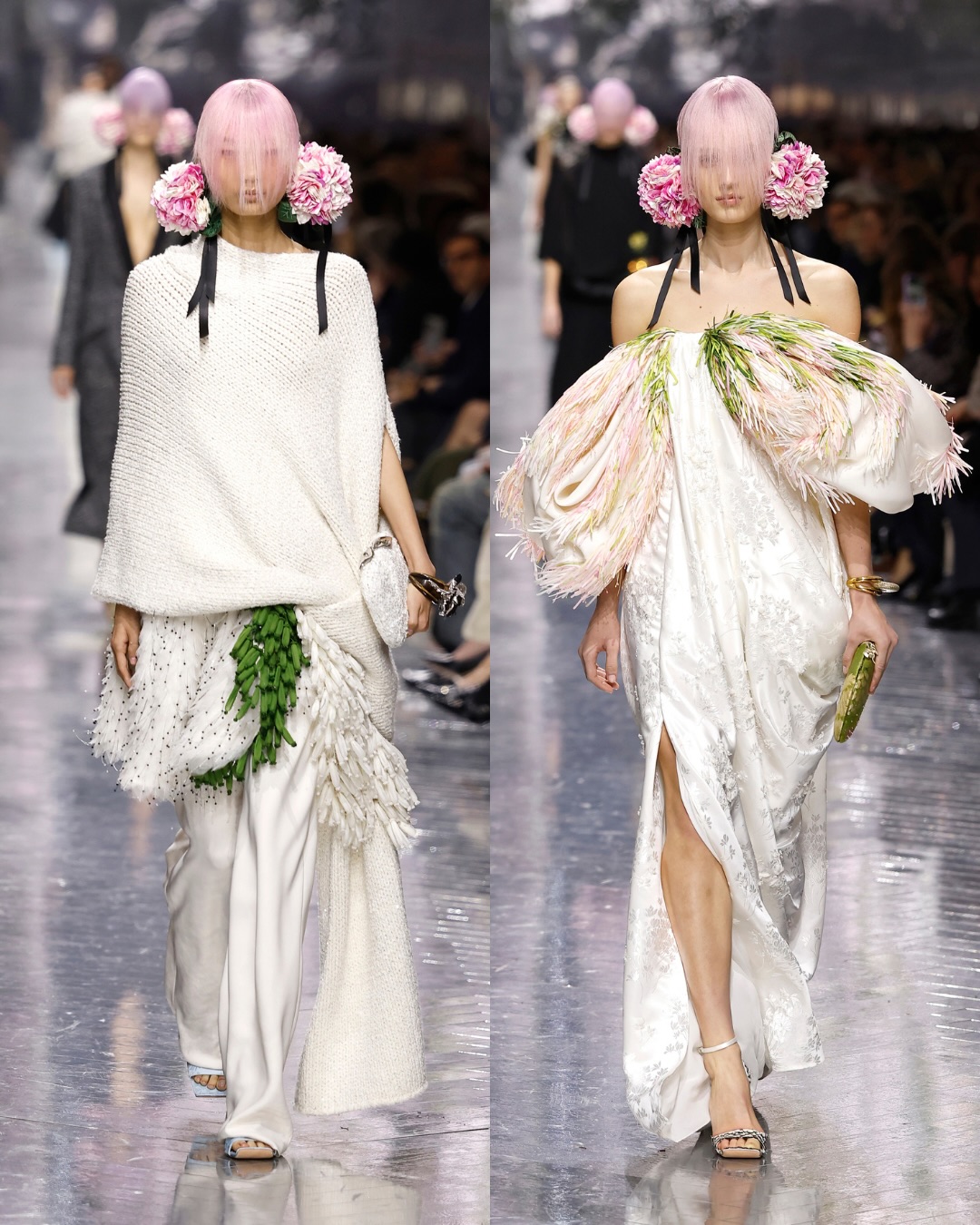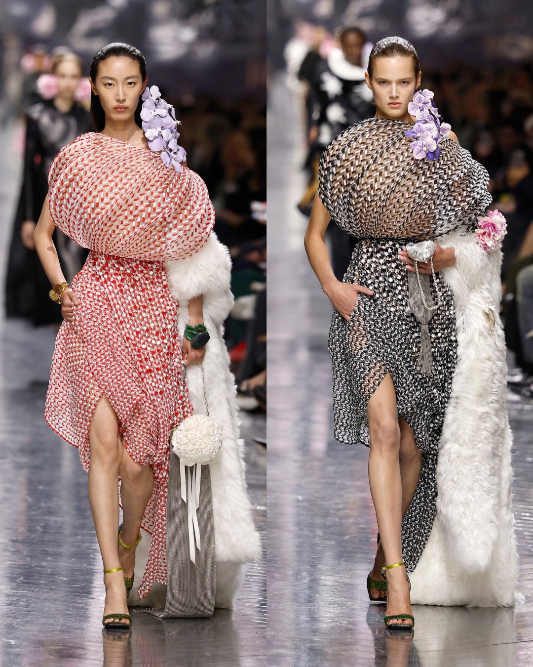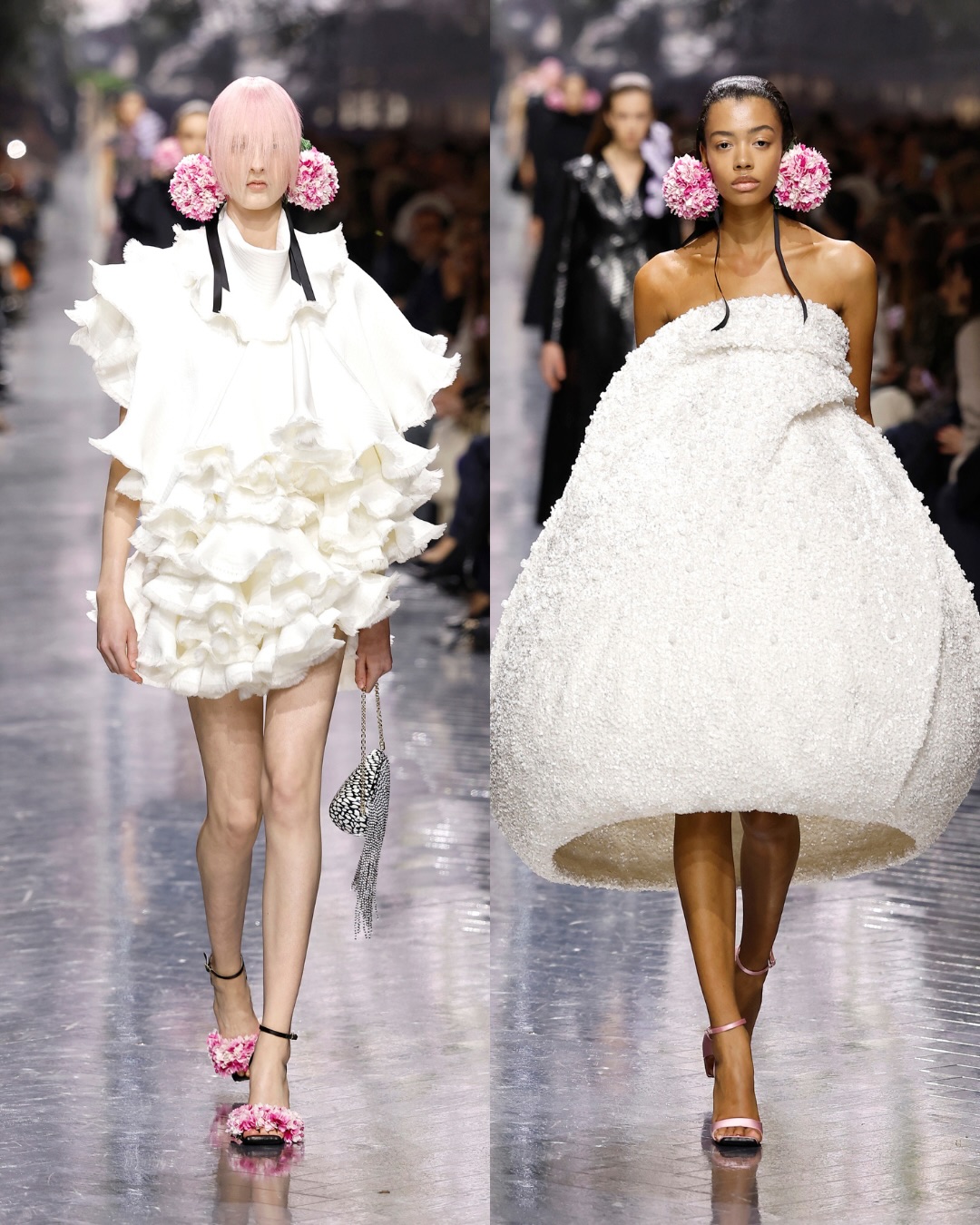 وفي سابقة ضمن مجموعات Dior Haute Couture، تُقدَّم حقائب اليد كقطع منحوتة ذات حضور قوي، تُعامل كل واحدة منها كعمل فني مستقل، يعكس مفهوم الاقتناء بقدر ما يعكس فعل الارتداء.