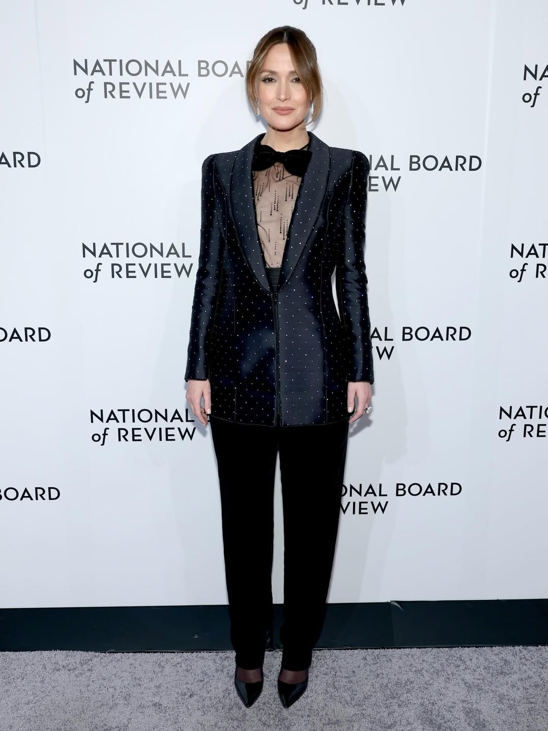 بعيدة تمامًا عن الملل، تألقت Rose Byrne في بدلة سوداء من Armani Privé جمعت بين الأناقة والرصانة. صُمّمت البدلة بخامات فاخرة وخياطة متقنة، فيما أضافت الطبقة الشفافة تحتها لمسة أنثوية ناعمة خفّفت من حدّة الإطلالة. جاءت النتيجة متوازنة بين القوة والرقي، في تجسيد واضح لمفهوم التاييلورينغ المعاصر.
