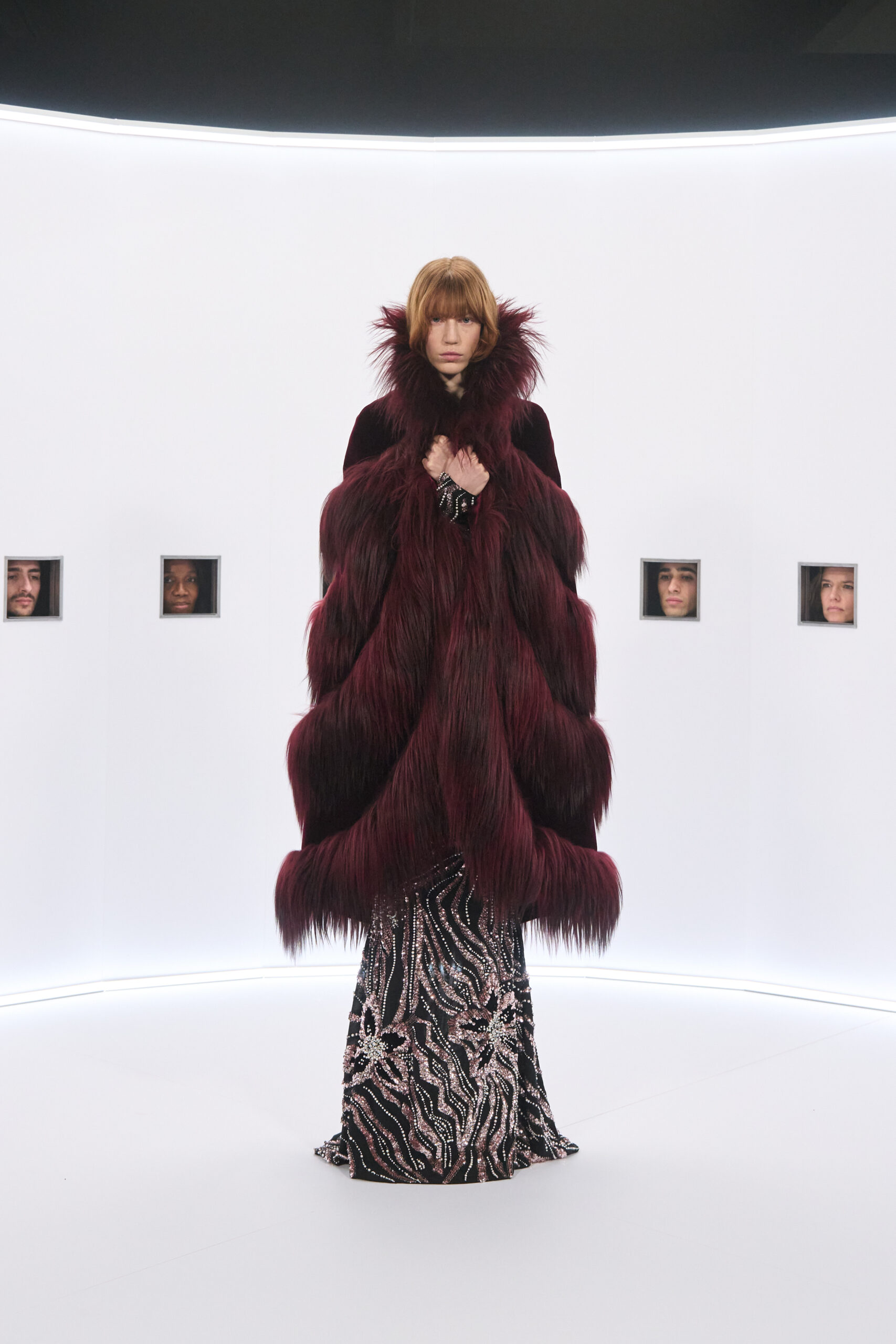لم يعتمد العرض على منصة تقليدية، بل تحوّلت صالة العرض إلى مساحة مشاهدة هادئة، حيث ظهرت الإطلالات تدريجيًا أمام الحضور، في تجربة تدعو إلى التأمل في التفاصيل والحِرفة، بعيدًا عن الإيقاع السريع المعتاد لعروض الأزياء.
