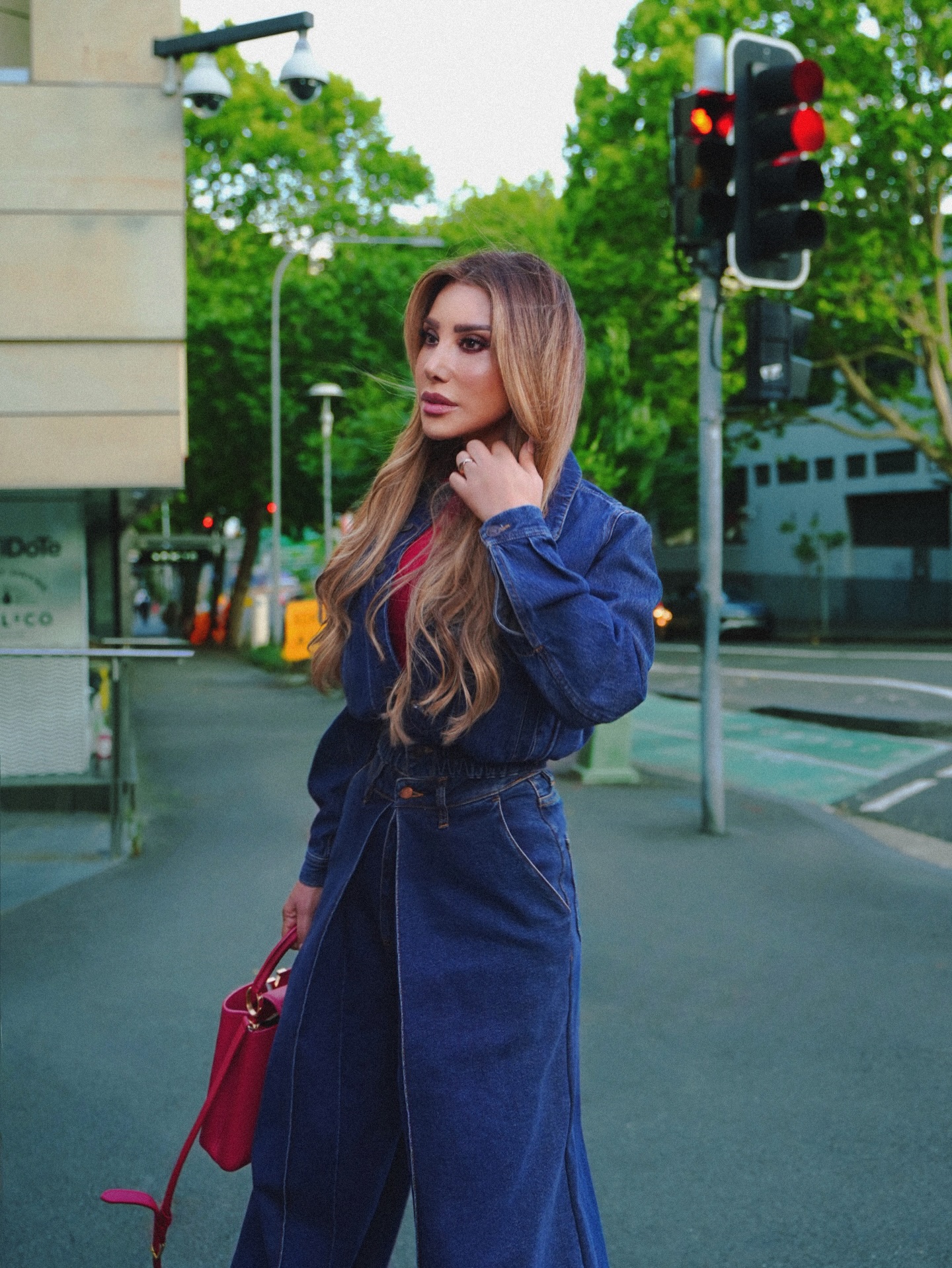 إطلالة دنيم كاملة – أسلوب نجوى كرم العصري