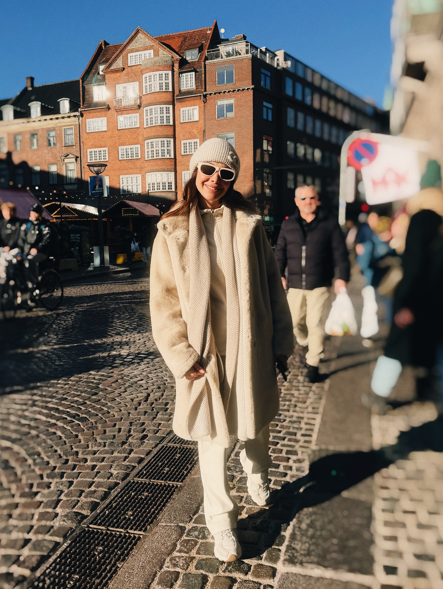 تألقت نانسي عجرم بإطلالة شتوية ناعمة تعتمد على لوحة ألوان كريمية موحّدة. ارتدت معطفًا مبطّنًا بطبقة فرو خفيفة فوق سترة محبوكة وشال طويل من الدرجة نفسها، ما منح حضورًا دافئًا ومريحًا. نسّقت الإطلالة مع بنطال مستقيم بلون كريمي وحذاء رياضي أبيض لأسلوب عملي. وأكملت اللوك بقبعة شتوية ونظارات شمسية تضيف لمسة عصرية إلى المظهر الهادئ.