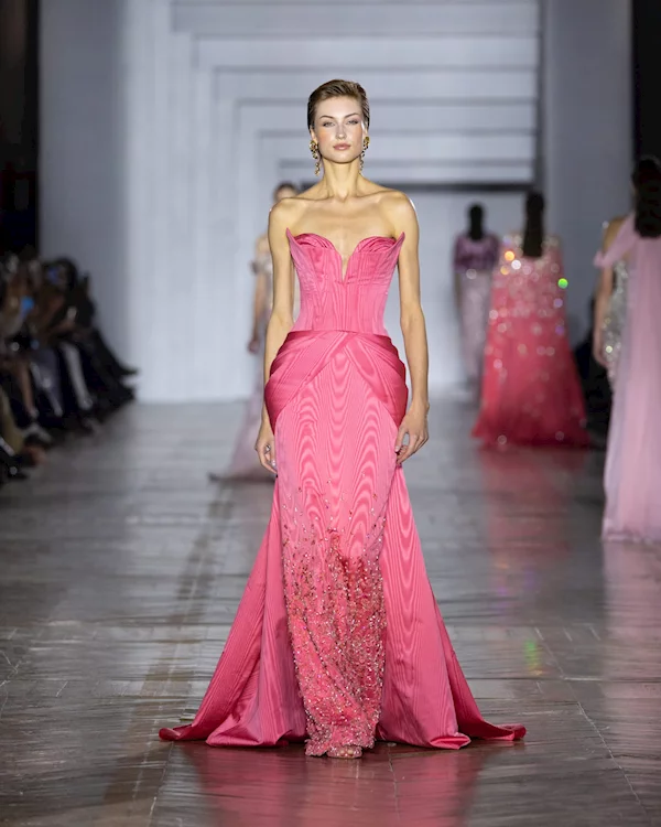 لم يكن العرض مجرد تقديم للأزياء، بل تجربة بصرية كاملة، حيث لعب الضوء والظل دورًا محوريًا في إبراز التفاصيل الدقيقة للقصّات والطبقات، لتتحوّل كل إطلالة إلى لوحة فنية متحركة، تعكس براعة الحرفية والابتكار في تصميم الأزياء الراقية.