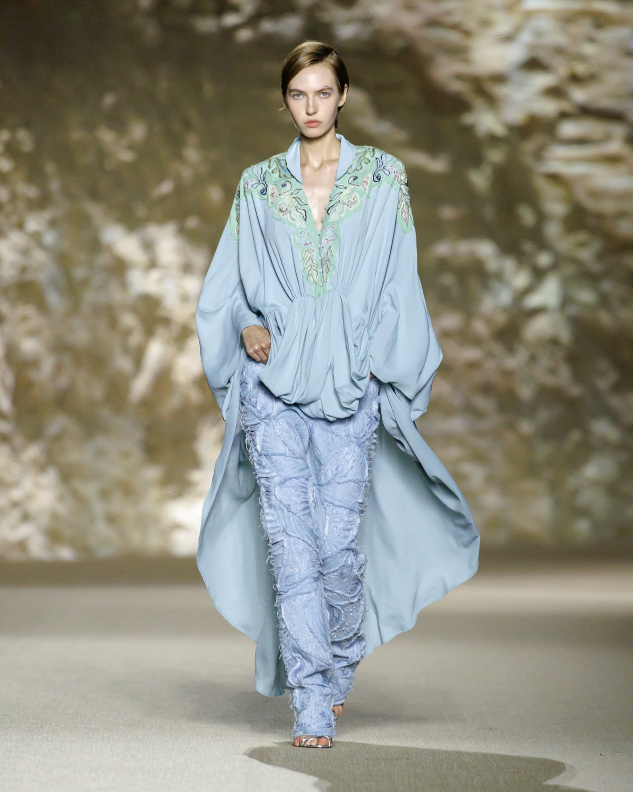 تميزت مجموعة “Lunatica” بأسلوب أنثوي حالِم يمزج بين الضوء والخيال، مع قصّات انسيابية ولمسات معدنية دقيقة تضيف قوة ناعمة وسحرًا متقلبًا يشبه القمر. كل قطعة تعكس فلسفة Valentina Nervi في تقديم موضة لا تقتصر على الجمال البصري فحسب، بل تحاكي المشاعر وتمنح المرأة إحساسًا بالثقة والتفرّد.